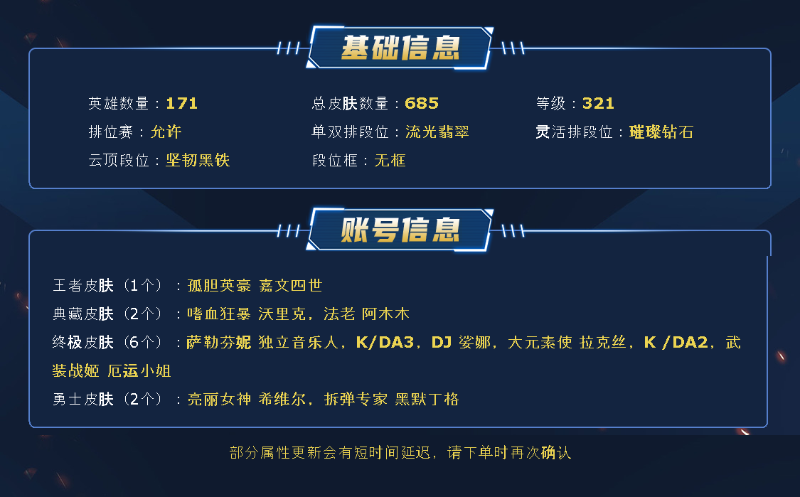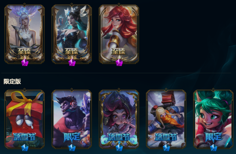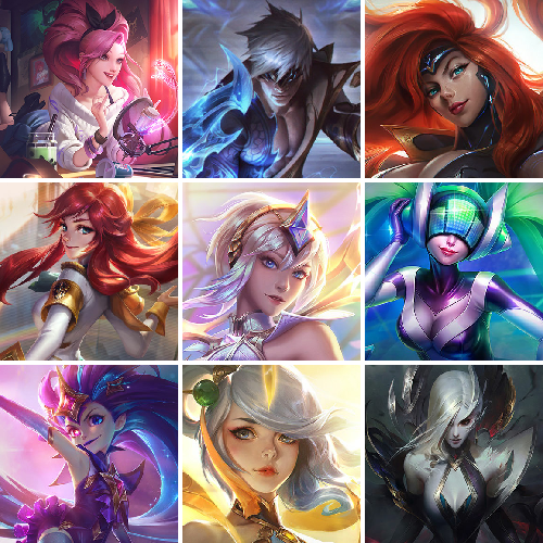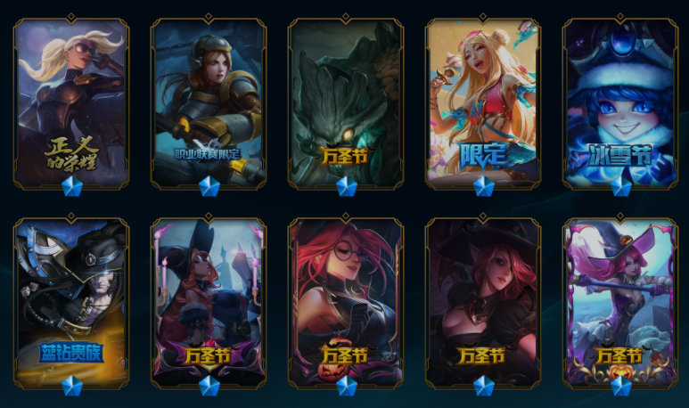 【可排位341原皮肤】K/DA ALL OUT萨勒芬妮、魔女娜美、西部魔影日女、星守佐伊、战斗学院女警、神龙尊者盲僧、灵魂莲华阿狸、至尊魔女莫甘娜、玉剑传说奶妈、魅惑女巫娜美、魅惑女巫妮蔻、魅惑女巫赛娜、北极星守望者佐伊、海之歌萨勒芬妮、水晶玫瑰风女、泳池派对佐伊、情人节辛德拉、征服者卡尔玛、EDG佐伊、斗魂觉醒拉克丝、花仙子萨勒芬妮、净雪之月女警、灵魂莲华奶妈、至高天拉克丝、海珀利安小队风女、月蚀骑士赛娜、神龙尊者卡尔玛、黎明使者莫甘娜、源计划赛娜、青花瓷拉克丝、山海绘卷妮蔻、魔女阿狸、魅惑之月阿狸、咖啡甜心安妮、双鱼星神娜美、破败军团卡尔玛、太空律动娜美、太空律动拉克丝、女帝风女、神龙尊者寒冰、新KDA阿狸、大元素使、武装战姬、DJ、冰雪节奶妈、钢铁军团拉克丝、万圣节女枪、万圣节风女、万圣节莫甘娜、勇者阿狸、御星魔矢、暗星锤石、暗星女王拉克丝、耀星女神拉克丝、黑夜使者奶妈、黎明使者奶妈、西部天使赛娜、星守阿狸、星守霞、源计划寒冰、月蚀骑士日女、西部诺手、小蜜蜂提莫、永恒之森阿狸、玉剑莫甘娜、玉剑娜美、源计划阿卡丽、战斗学院杰斯、战斗学院拉克丝、赵云、真实伤害奇亚娜、真实伤害赛娜