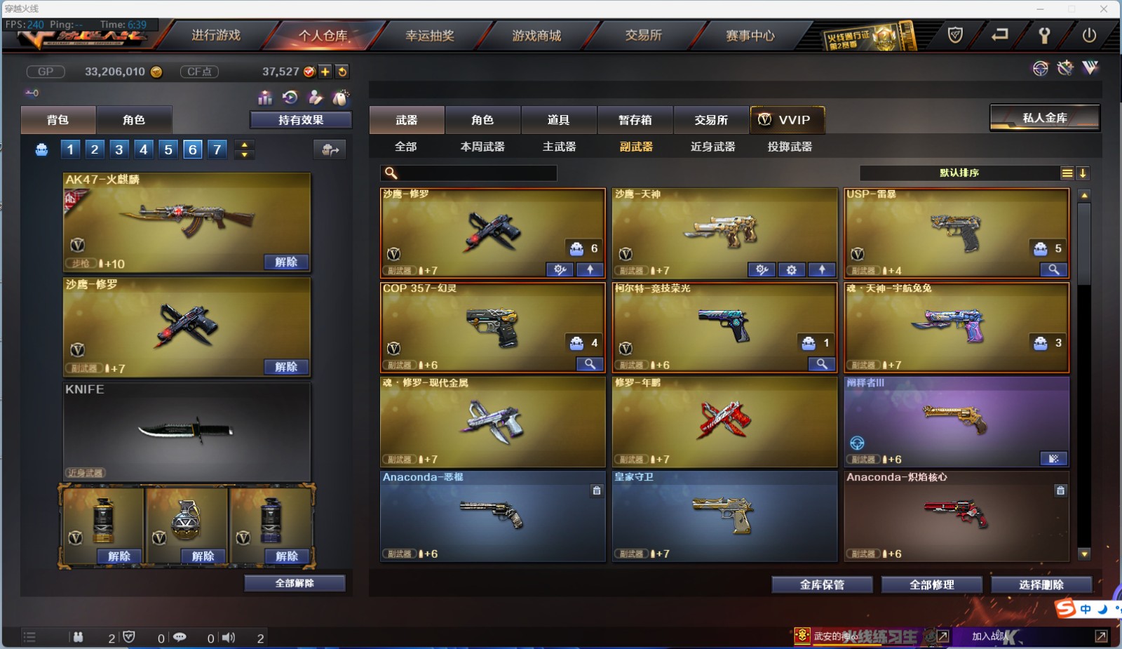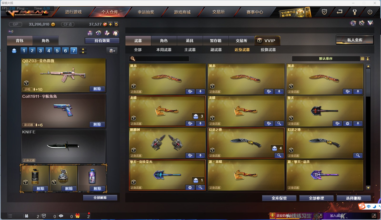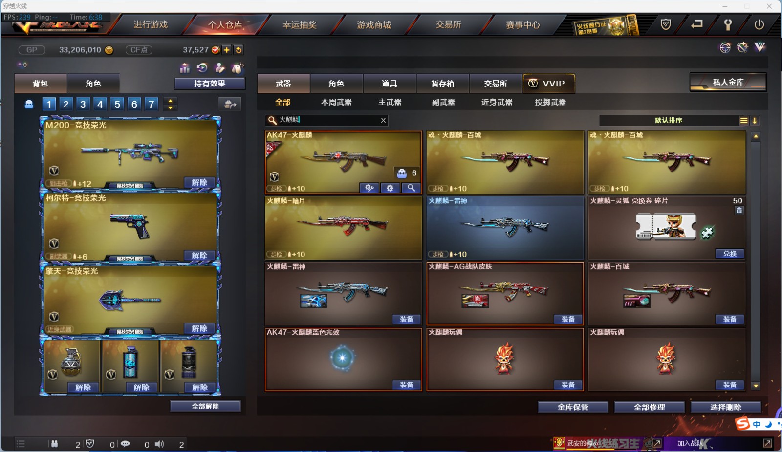 63V/M200-幻神/竞技荣光套/炫金雷神/2猩红/Barrett-毁灭音效卡/Barrett-极光/Barrett-暗月传说/AWM-天龙/QBZ03-金色蔷薇/Scar Light-白虎王者武器:炫金雷神;源·屠龙;源·武圣;魂·炼狱-玩具枪;源·猎神;火麒麟-暗月;源-裁决;修罗-年鹏;夺魂;魂·天神-宇航兔兔;M4A1-十二生肖·龙-雷神;源·龙啸;M4A1-仙界-黑骑士;源·机械迷城;M4A1-英雄-能量核心 英雄武器:M4A1-青龙;Barrett-暗月传说;高爆手雷-幻灵;幻灵之锋;COP 357-幻灵;M4A1-幻灵;AK-47-猩红传说;9A91-烈火;M200-幻神;QBZ03-金色蔷薇;M200-竞技荣光;AK47-B-身先士卒;黑骑士-海王;沙鹰-天神;麒麟刺;擎天;AK47-黑武士;Scar Light-白虎;龙啸;烟雾弹-幻灵;擎天-竞技荣光;高爆手雷-竞技荣光;闪光弹-竞技荣光;烟雾弹-竞技荣光;炼狱-风暴;白虎-电玩蓝兔;闪光弹-幻灵;USP-雷暴;Barrett-极光;AK47-B-常胜将军;沙鹰-修罗;AK47-B-战士;AK47-火麒麟;
