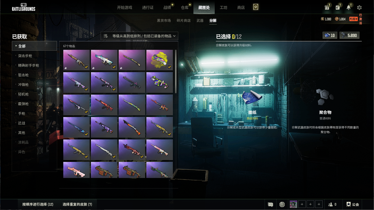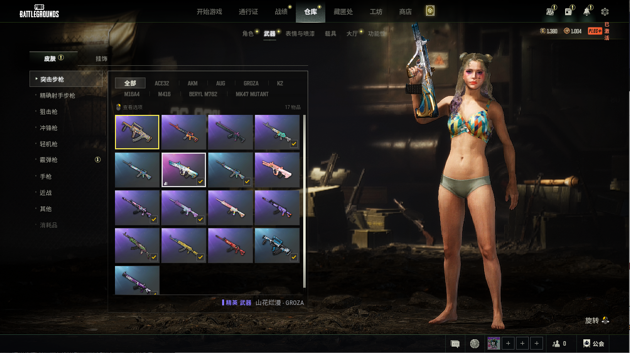 可排位号丶超跑兰博基尼丶女团头丶毒液762丶亚特兰aug丶暴脾气m4丶烟枪丶多枪皮