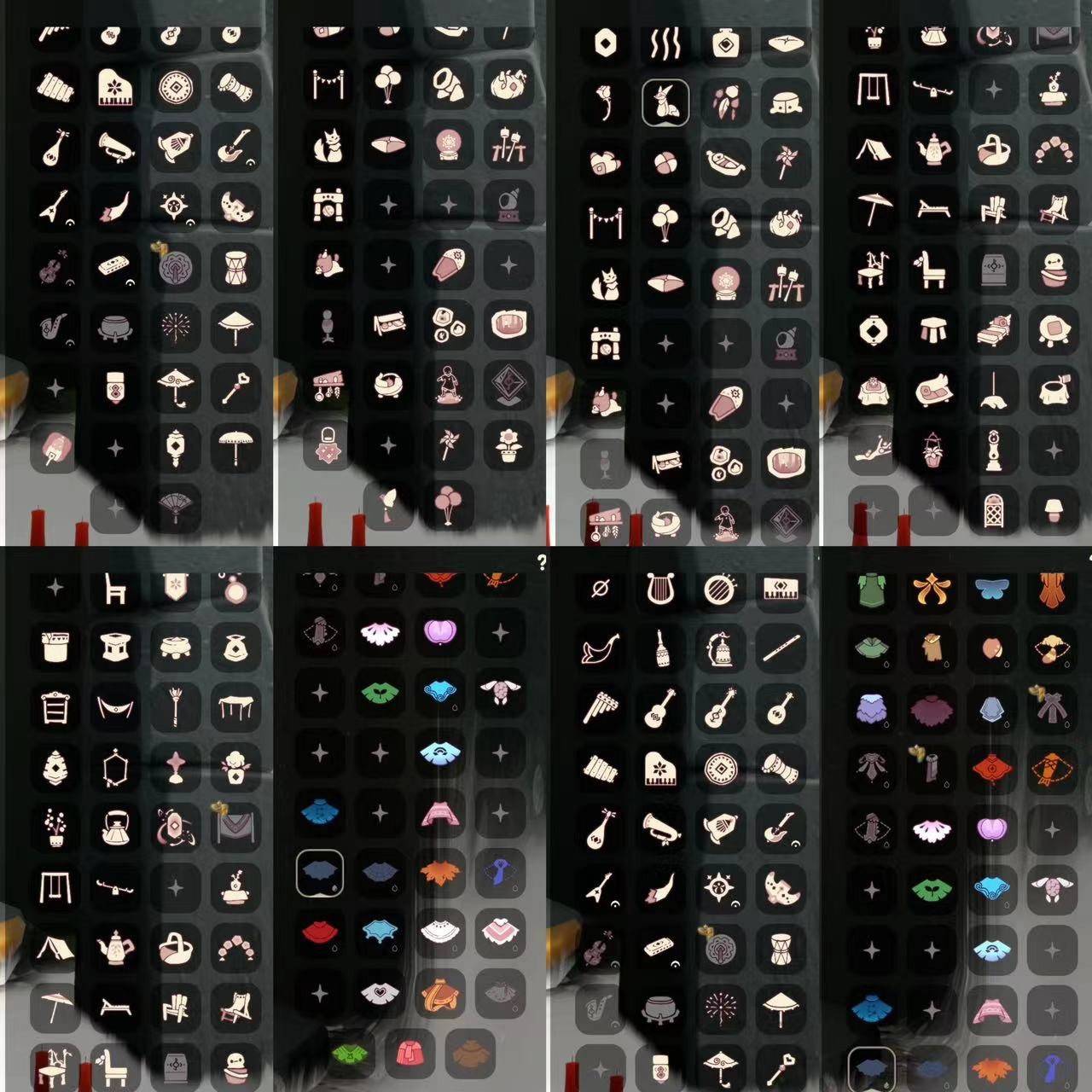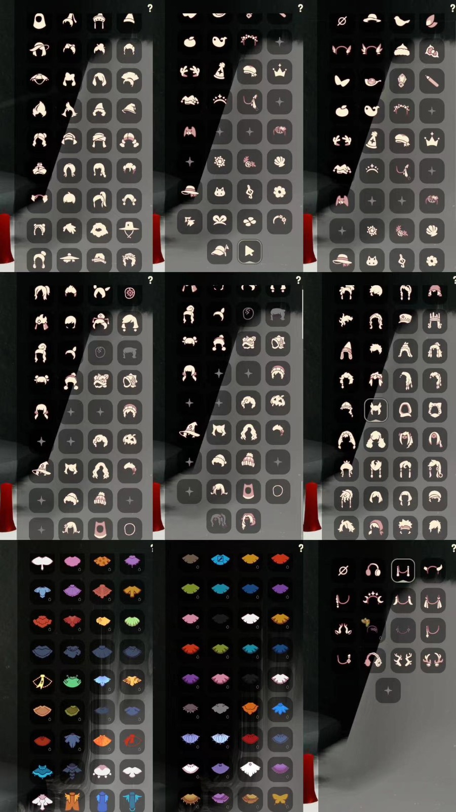 礼包:奔离裤 挚爱裙 祥云裤 女巫裙 跑鞋 星月 九色鹿角 彩虹耳钉 彩虹耳机 枯角 鹿角 白领巾 水母 奔离头 绒线帽 彩虹帽 女巫帽 蜘蛛朋克 贝壳 雪花 兔子 橘子 鱼 草 奥利奥发箍 tgc 围巾 夹克 欧翼 奉献斗 福娃套 锦鲤套 蝙蝠套 蛛丝斗 皮皮猫套 瑞雪斗 白金绒 雪怪斗 绊爱套 风之旅人 白吉他 电吉他 线框斗 海龟斗 粽叶斗 魔法棒 欧声 灯笼 祥云伞 夏日阳伞 秋千 跷跷板 茶桌 茶壶 野餐篮 狐狸 船 南瓜 皮皮猫 奥利奥 冲浪板 水晶球 烧烤架 球门