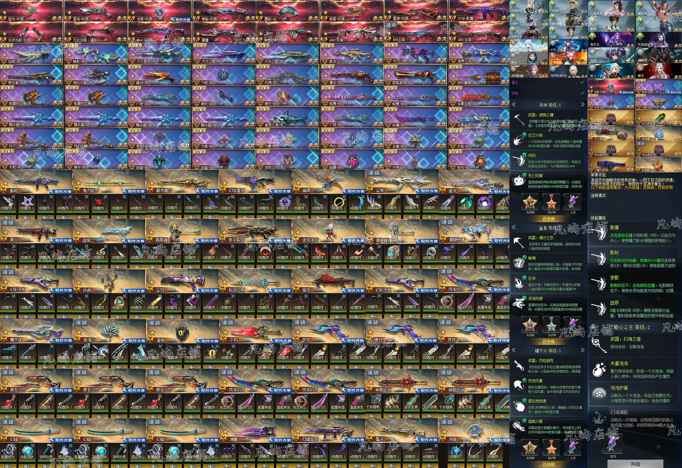 普通人物:派拉◆迭影◆爱尔雅◆六臂魔童◆青龙◆腾龙◆伊利亚◆白虎◆黄金比伯◆轮滑少女◆龙鹰◆熙碧儿◆哈苏女王◆指挥官潘多拉◆间谍潘多拉◆