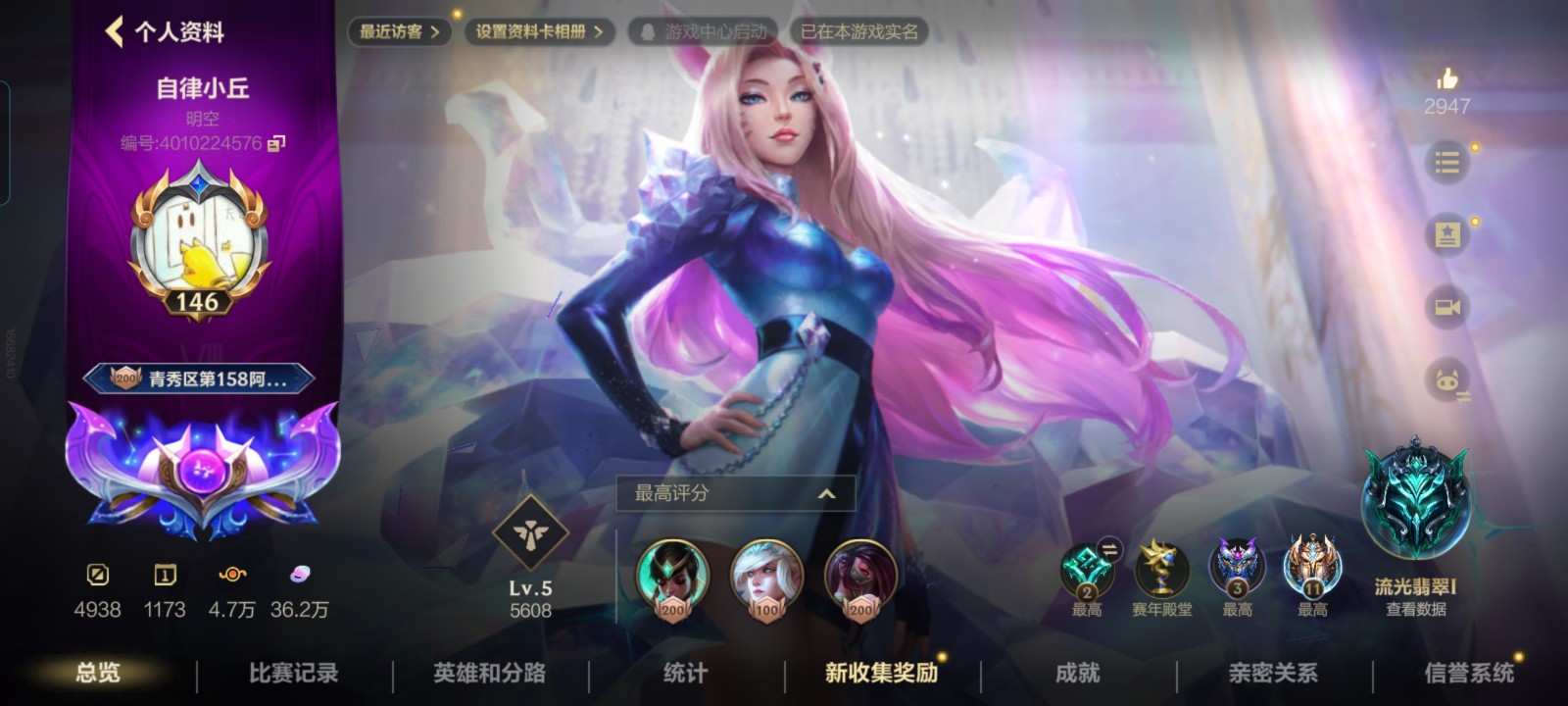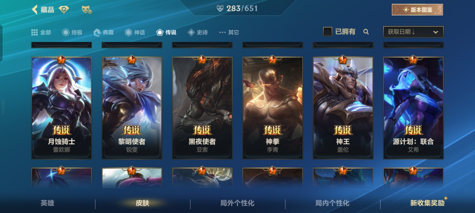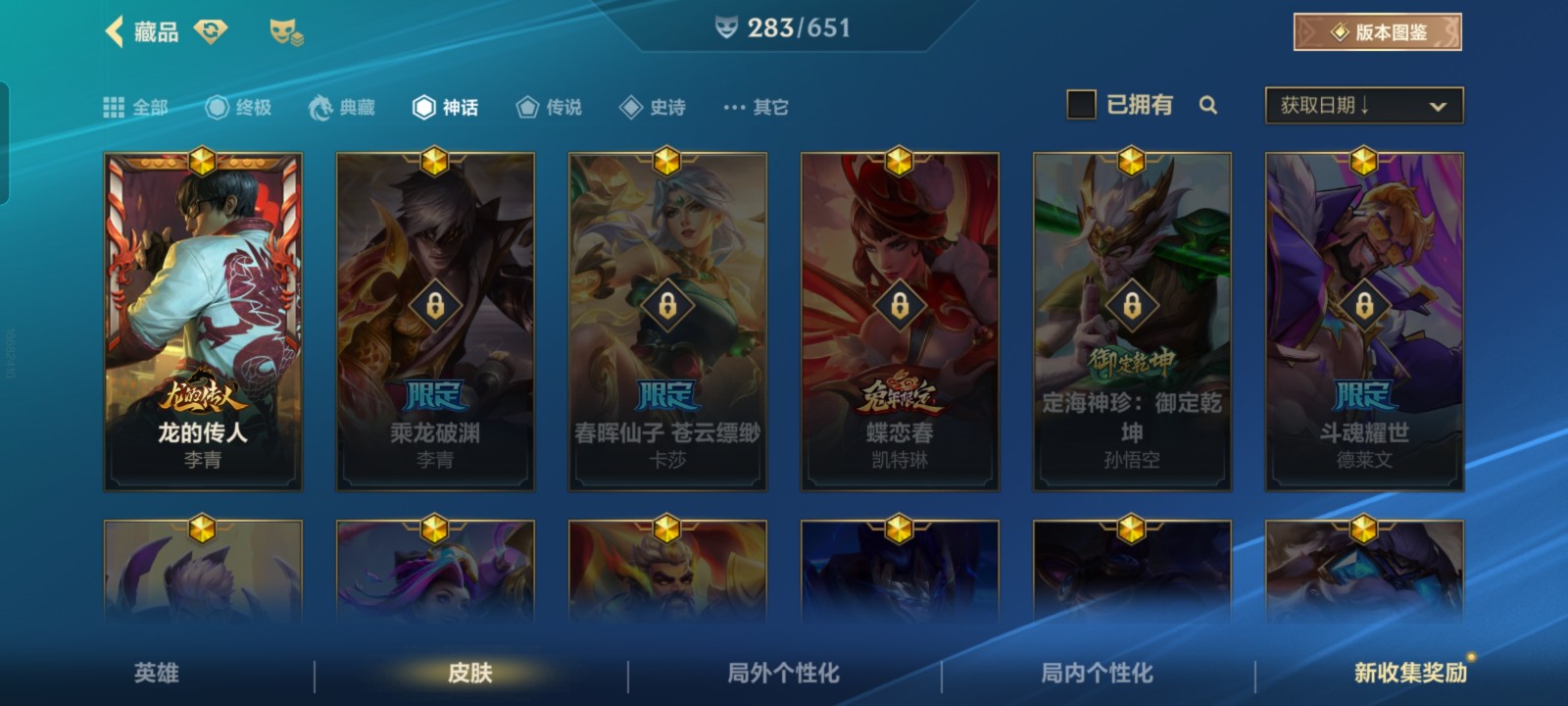 【安卓】 【允许排位】可排283皮1神话龙瞎21传说星守金克丝霞洛西部卢锡安暗星烬黎明瑞文黑夜亚索