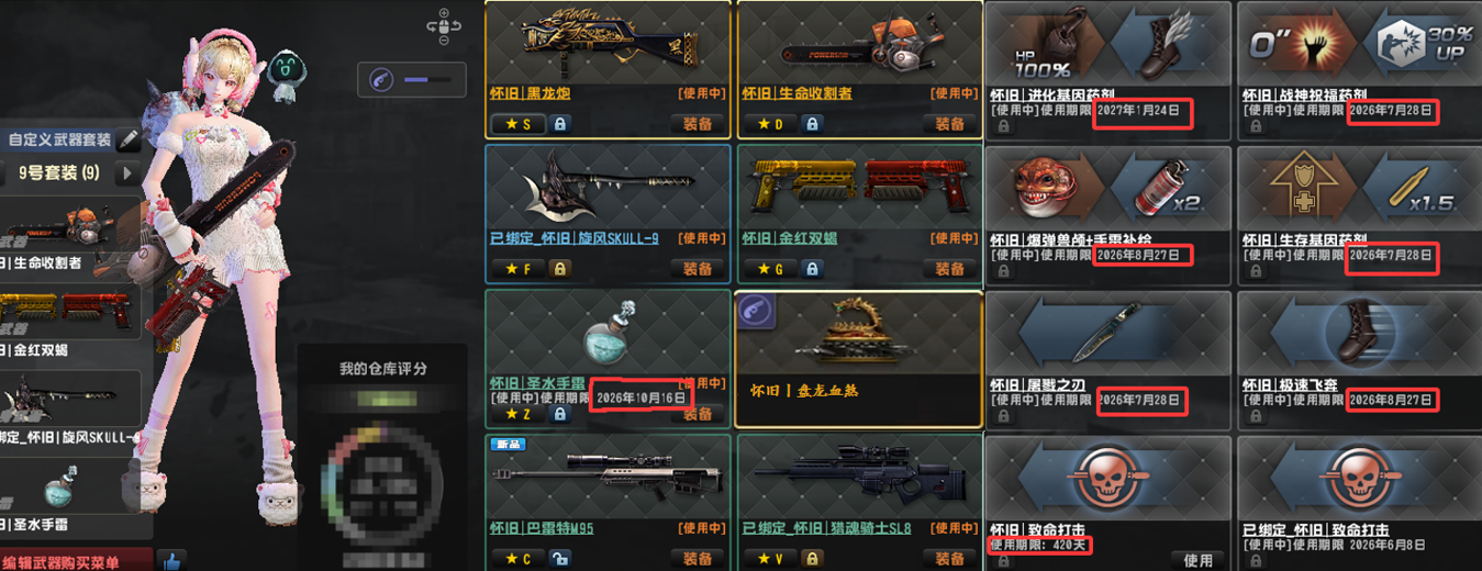 特典加特林黯火●怀旧套盘龙龙炮电锯金红斧头●神威四件套龙神次元天使雷●光束套维京套闪电野去雾