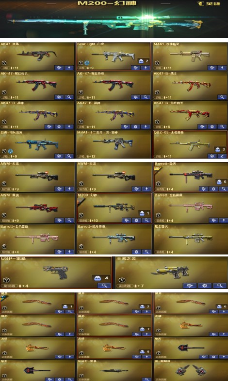 北部M200幻神黄忠皮+USP雷暴王者蔷薇觉醒白虎电玩蓝兔+6烈龙6盘龙斯泰尔蝴蝶+死亡之眼