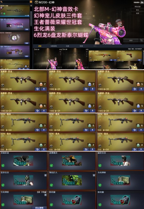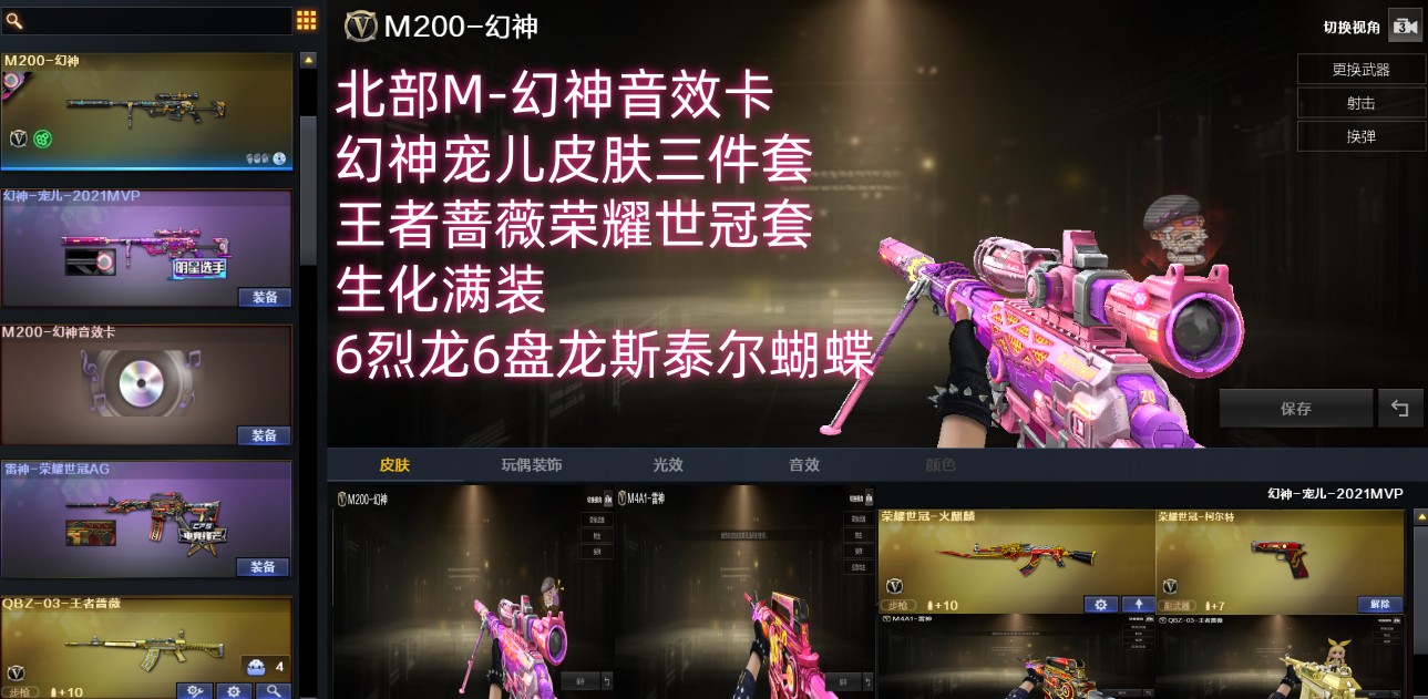 M-200幻神音效卡宠儿黄忠双皮三件套+柯尔特荣耀世冠套王者蔷薇AG冠军皮+生化满6烈6盘死亡之眼