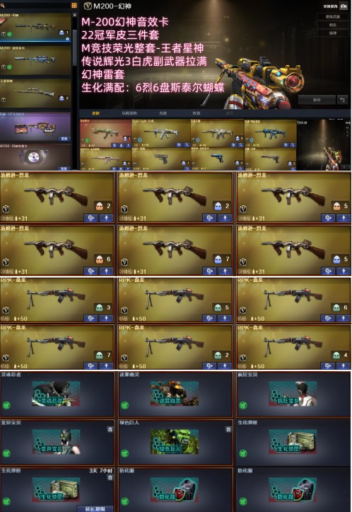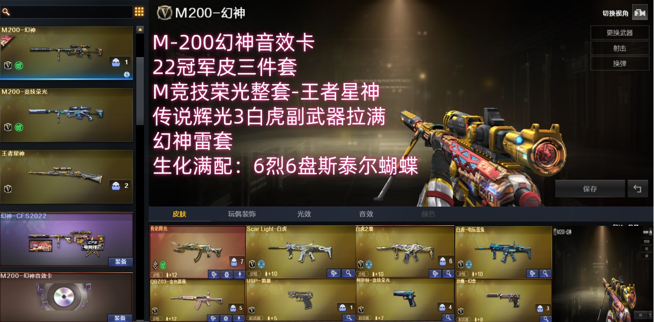 M-幻神音效卡22冠军皮三件套+幻兽雷套M竞技套USP雷暴王者星神3白虎+生化满6烈6盘斯泰尔蝴蝶