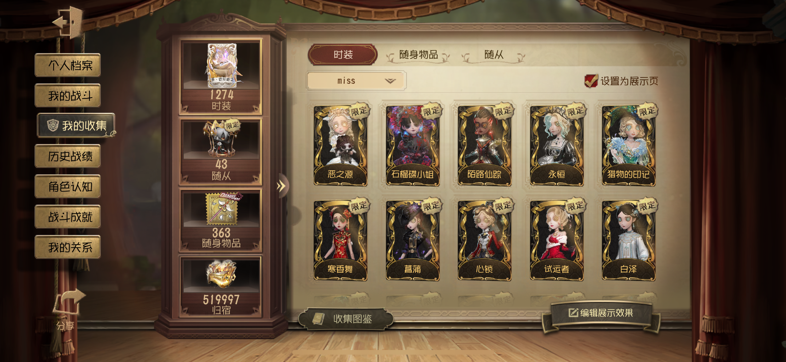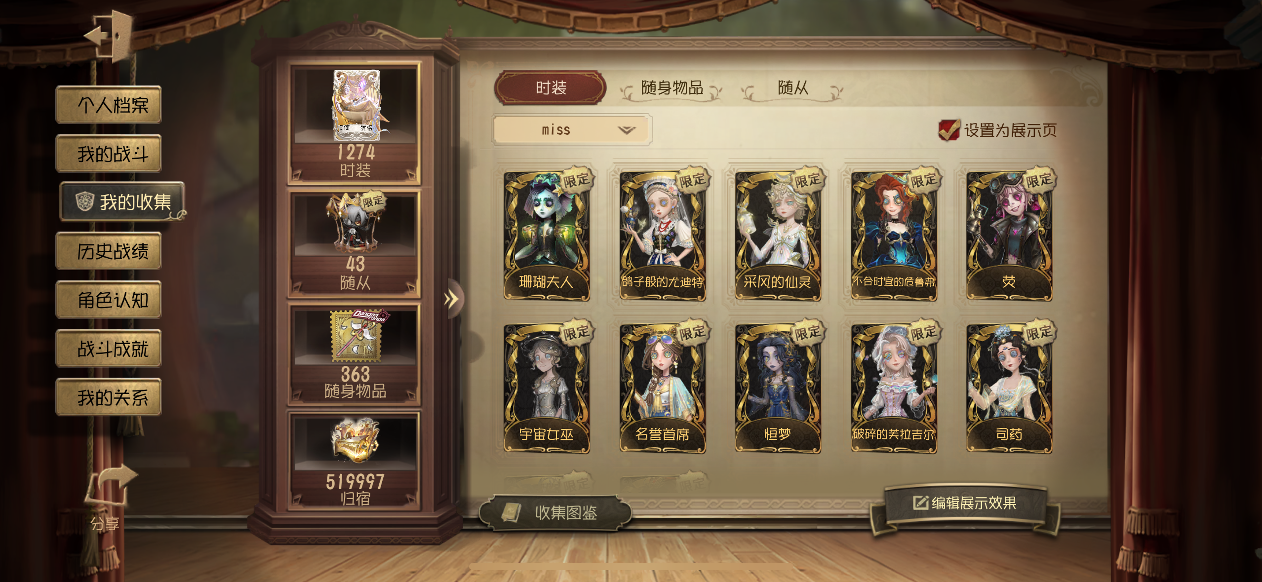 祭司虚妄/珊瑚夫人/鸽子般的尤特/恶之源/采风的仙灵/宇宙女巫/白泽/永恒/菖蒲/不合时宜的危鲁弗/荧/心锁/试运者/寒香舞/陌路仙踪/招风旗/惊鸿/名誉首席/司药/华生小姐/静默/巴萨丽莎/瓦姬特/信使/川上富江/日落黄沙/陶醉之人