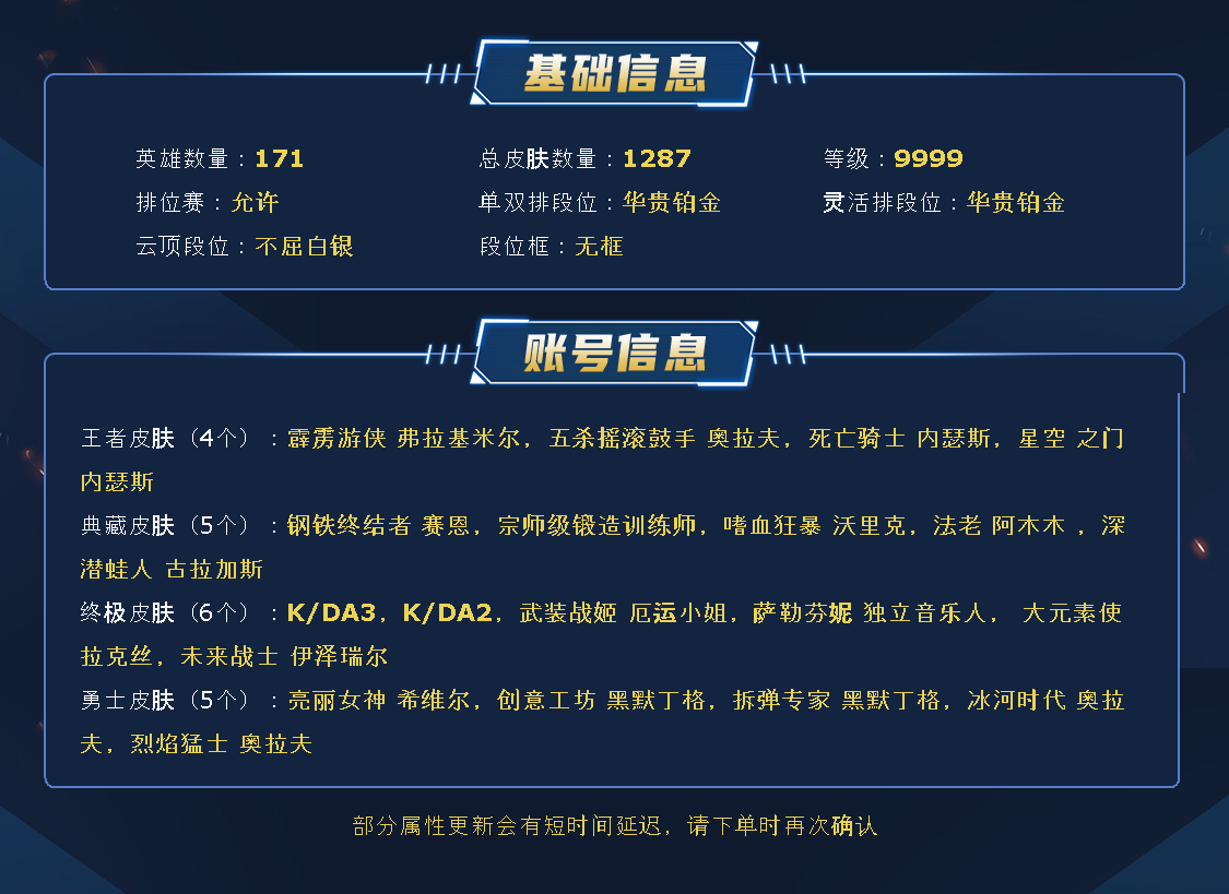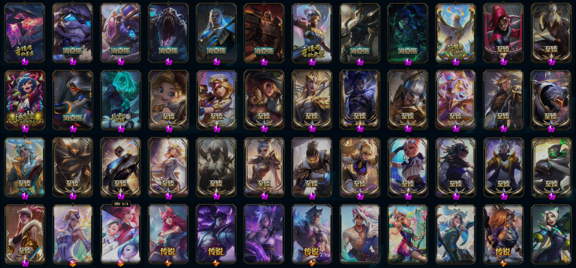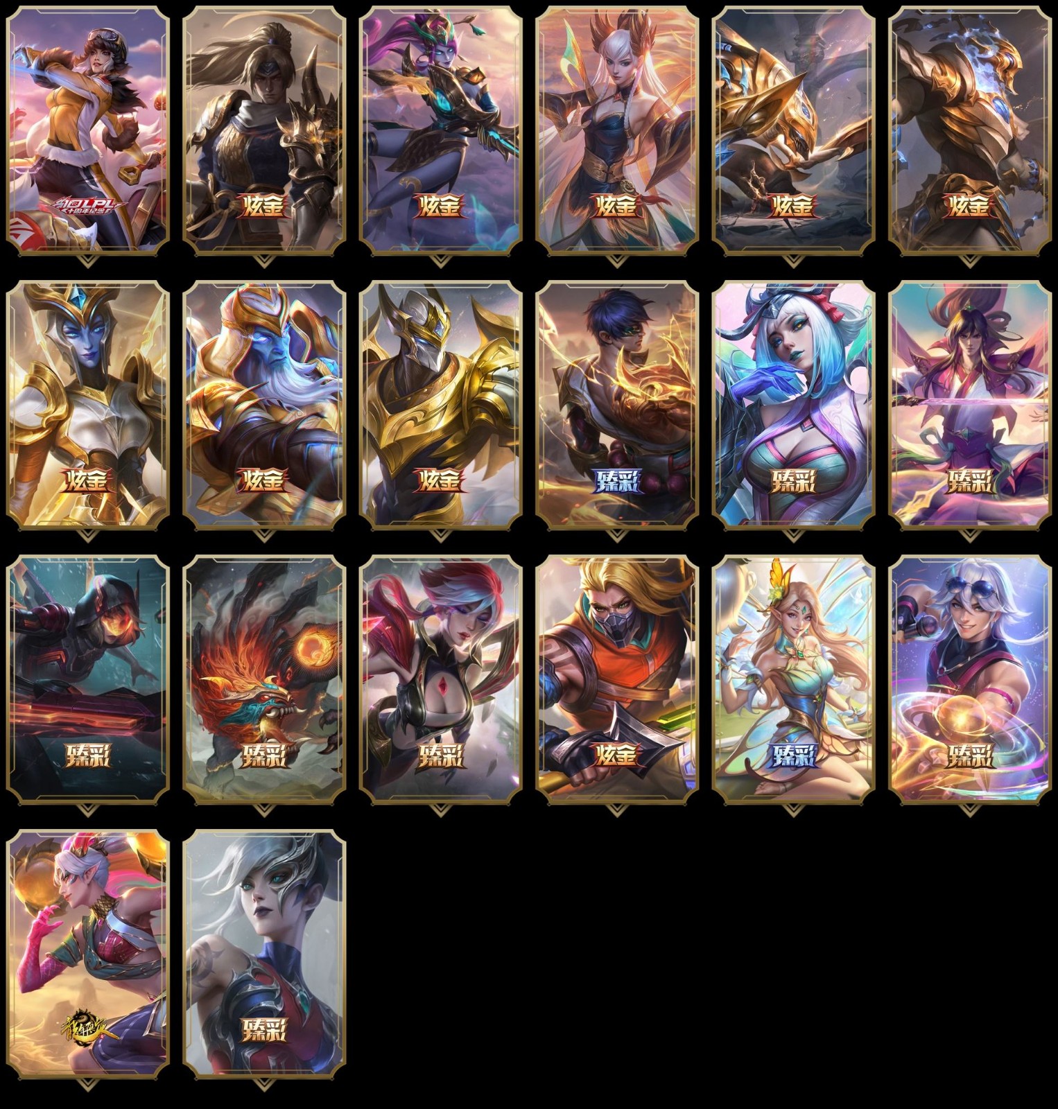 【重要皮肤】黑色玫瑰假面舞会卡特琳娜至臻 天龙之子伊泽瑞尔至臻 墨之影武者亚索至臻 魅惑女巫莫甘娜至臻 战斗学院蕾欧娜至臻 太空律动璐璐至臻 魔女乐芙兰至臻 奥术师佐伊至臻 未来战士卢锡安至臻 真实伤害亚索至臻 真实伤害赛娜至臻 星之守护者索拉卡至臻 灵能特工伊泽瑞尔至臻 源计划阴劫至臻 王国机神玄武盖伦至臻 神龙尊者炎龙瑟提至臻 征服者贾克斯至臻 KDA阿卡丽至臻 KDA阿卡丽2022至臻 电玩女神凯特琳至臻 电玩女神凯特琳2022至臻 真实伤害奇亚娜至臻 玉剑传说武剑仙至臻 玉剑传说武剑仙2022至臻 腥红之月亚托克斯至臻 未来战士锤石至臻 未来战士锤石2022至臻 黑夜使者李青至臻 黑夜使者李青2022至臻 海克斯科技雷克顿 海克斯科技克格莫 海克斯科技斯维因 海克斯科技吉格斯 暗星科加斯 黎明使者卡尔玛 恐惧新星德莱厄斯 零之枪骑赫卡里姆 摄魂使者薇恩 新创战纪希维尔 胜利之王泰达米尔 舞会公主安妮 战熊骑士瑟庄妮 创星之灵璐璐 荣誉使者玛尔扎哈 勇敢的心德莱厄斯 电玩女神厄运小姐 电玩勇者锐雯 电玩女神阿狸 星之守护者伊泽瑞尔 玉剑传说无影 玉剑传说舞剑仙 玉剑传说舞龙卫 星之守护者佐伊 点心宝贝阿木木 剪纸仙灵希维尔 剪纸仙灵盖伦 剪纸仙灵婕拉 剪纸仙灵加里奥 烈焰仙子黛安娜 替父从军花木兰 神龙烈焰金克丝 春晖神女拉克丝 你看见过我的熊猫吗安妮 北辰之威内瑟斯 南天之怒沃里克 定海神珍孙悟空 玉净夜叉凯特琳 紫金罗刹莫甘娜 广寒仙子嫦娥 张辽文远 司马懿仲达 金猪烈焰瑟庄妮 烈焰美人薇恩 纳财大帝塔姆 王国机神青龙德莱文 王国机神苍狼瑟提 王国机神玄武盖伦 福牛守护者菲奥娜 胜利女神奥莉安娜 胜利枪神卢锡安 胜利之剑亚托克斯 怦然心动凯特琳 甜心宝贝娑娜 觅心游侠卢锡安 觅心之翼奎因 觅心猎手薇恩 寒冬精灵璐璐 冬季仙境奥莉安娜 圣诞捣蛋鬼金克丝 圣诞老人布隆 狂心冰王图奇 冰雪女神辛德拉 魄罗骑士瑟庄妮 夺命美人卡特琳娜 平安夜女神娑娜 圣诞糖果棒厄运小姐 魅惑女巫奈德丽 死亡誓约劫 死亡誓约维克托 勇敢的心德莱厄斯 海之歌艾希 海之歌永恩 泳池派对凯特琳 泳池派对辛德拉 泳池派对厄运小姐 泳池派对菲奥娜 泳池派对雷克顿 电玩战魂赫卡里姆 御星魔矢艾希 鸡里奥 制胜金球拉莫斯 DWG蕾欧娜 DWG奈德丽 FPX锤石 FPX薇恩 FPX普朗克 iG卡莎 iG艾瑞莉娅 iG乐芙兰 SSG霞 SSG洛 SSG伊泽瑞尔 SKTT1扎克 SKTT1烬 SKTT1辛德拉 SKTT1娜美 SKTT1艾克 SKTT1卡莉丝塔 SKTT1阿兹尔 SKTT1伊莉丝 SKTT1雷克顿 SSW锤石 SSW泰隆 SSW辛吉德 SKTT1贾克斯 SKTT1婕拉 暗杀星蒙多 暗杀星努努和威朗普 暗杀星伊泽瑞尔 Fnatic迦娜 Fnatic库奇 Fnatic古拉加斯 Fnatic嘉文四世 Fnatic卡尔萨斯 冰雪节玛尔扎哈 冰雪节辛吉德 防暴士兵辛吉德 钢铁之翼艾尼维亚 冠军典狱长锤石 冠军掠夺者卡兹克 冠军之矛卡莉丝塔 冠军之血希瓦娜 冠军之隐劫 冠军之志瑞兹 鬼影重重魔腾 海贼瑞兹 胡桃夹子萨科 惊悚派对阿木木 警用试作体K9内瑟斯 密林猎手提莫 南瓜头费德提克 圣诞精灵崔丝塔娜 圣诞开心鬼提莫 圣诞狂欢基兰 圣诞狂欢努努和威朗普 圣诞老人古拉加斯 圣诞玩偶波比 圣诞驯鹿克格莫 糖果使徒费德提克 卧虎藏龙贾克斯 无头骑士赫卡里姆 喜庆之树茂凯 邪恶圣诞老人维迦 幸福女神乐芙兰 雪默丁格 野兽猎人德莱文 野兽猎人瑟庄妮 野兽猎人泰达米尔 英勇玩具兵普朗克 永恒之森乐芙兰 勇者阿狸 征服者诺提勒斯 征服者韦鲁斯 暗影沃里克 冠军之箭艾希 阿木木主人不要我了 2021全球总决赛嘉文四世 波比的巧克力工坊 都铎王朝图奇 十周年纪念安妮 源代码乐芙兰 神凰行者瑞羽圣凰艾尼维亚 胜利凤凰艾尼维亚 斗魂觉醒佛耶戈 大元素使拉克丝 未来战士伊泽瑞尔 武装战姬厄运小姐 KDAALLOUT萨勒芬妮独立音乐人 KDAALLOUT萨勒芬妮明日新星 KDAALLOUT萨勒芬妮超级巨星 绝息圣堂洛