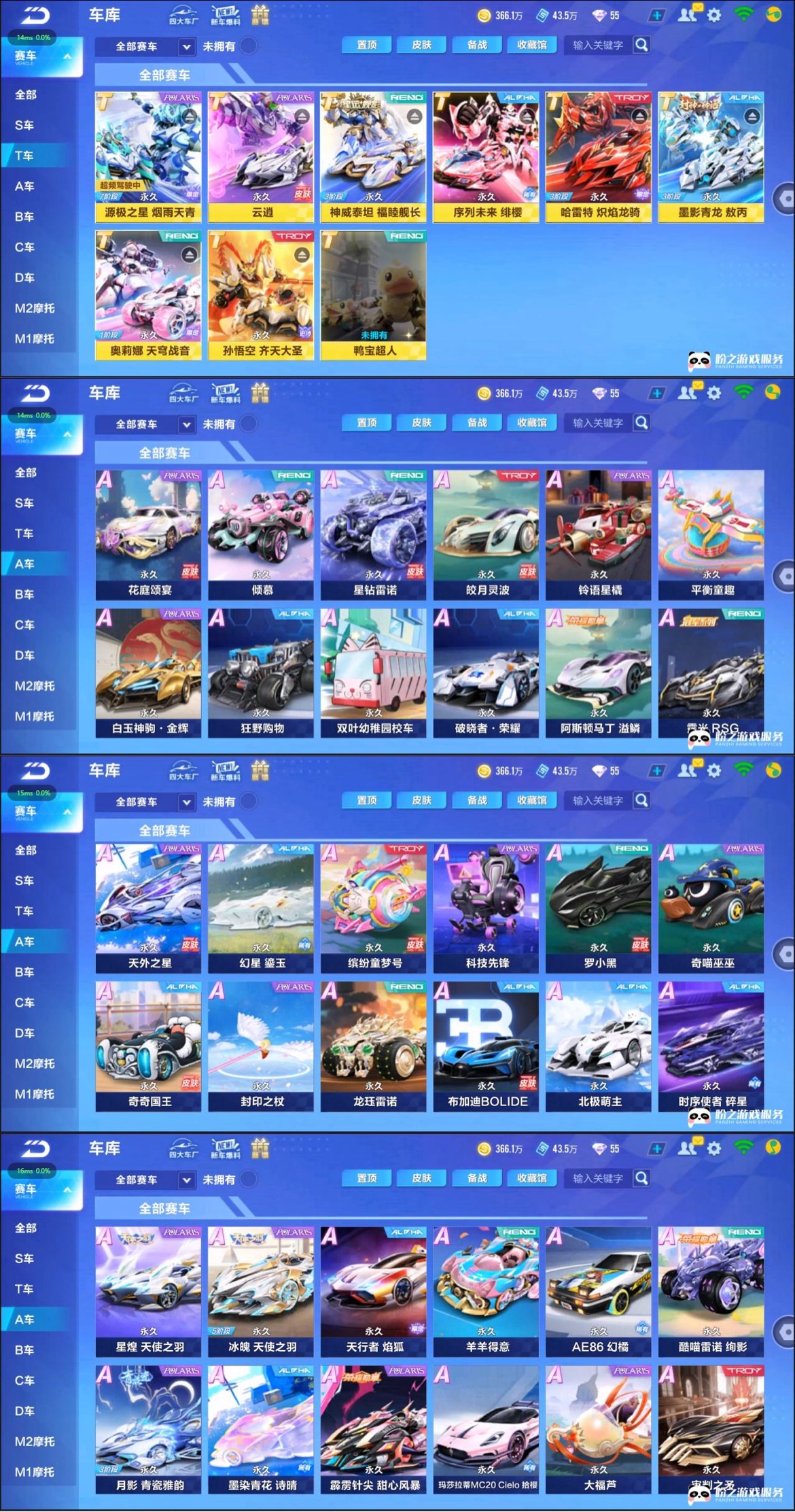 【A车】倾慕/铃语星橇/平衡童趣/星钻雷诺/花庭颂宴/皎月灵波/白玉神驹·金辉/狂野购物/双叶幼稚园校车/破晓者·荣耀/阿斯顿马丁/霆光 RSG/