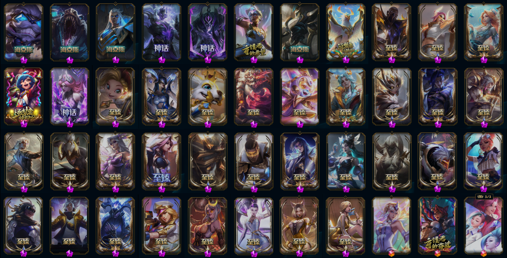 【重要皮肤】天龙之子伊泽瑞尔至臻 心之钢永恩至臻 斗魂觉醒派克至臻 DRX亚托克斯至臻 墨之影武者亚索至臻 花仙使者卡特琳娜至臻 绝息圣堂厄运小姐至臻 青花瓷丽桑卓至臻 星之守护者辛德拉至臻 海之歌萨勒芬妮至臻 女帝黛安娜至臻 太空律动璐璐至臻 魔女婕拉至臻 奥术师佐伊至臻 未来战士卢锡安至臻 真实伤害亚索至臻 真实伤害赛娜至臻 福牛守护者菲奥娜至臻 源计划阴劫至臻 王国机神玄武盖伦至臻 黑夜使者凯隐至臻 神龙尊者均衡之龙沃利贝尔至臻 KDA二代卡莎至臻 KDA阿狸至臻 KDA伊芙琳至臻 KDA伊芙琳2022至臻 烈焰美人薇恩至臻 烈焰美人薇恩2022至臻 电玩女神凯特琳至臻 电玩女神凯特琳2022至臻 真实伤害奇亚娜至臻 真实伤害奇亚娜2022至臻 绒毛菲兹至臻 玉剑传说武剑仙至臻 玉剑传说武剑仙2022至臻 腥红之月亚托克斯至臻 腥红之月亚托克斯2022至臻 黑夜使者李青至臻 黑夜使者李青2022至臻 灰烬守护者慎 灰烬征服者潘森 海克斯科技瑟庄妮 海克斯科技雷克顿 海克斯科技斯维因 海克斯科技吉格斯 海克斯科技玛尔扎哈 水晶圣骑蕾欧娜 黎明使者卡尔玛 零之枪骑赫卡里姆 胜利之王泰达米尔 胜利巨口克格莫 电玩女神厄运小姐 电玩勇者锐雯 玉剑传说无影 玉剑传说舞剑仙 星之守护者佐伊 黎明使者薇恩 天龙之子斯莫德 替父从军花木兰 神龙烈焰金克丝 你看见过我的熊猫吗安妮 南天之怒沃里克 定海神珍孙悟空 紫金罗刹莫甘娜 司马懿仲达 金猪烈焰瑟庄妮 王国机神苍狼瑟提 王国机神白虎贾克斯 胜利枪神卢锡安 胜利之剑亚托克斯 甜心之翎洛 甜心宝贝娑娜 觅心之翼奎因 幽梦玫瑰辛德拉 水晶玫瑰斯维因 冬季仙境奥莉安娜 圣诞捣蛋鬼金克丝 圣诞老人德莱文 冬季仙境卡尔玛 冰雪女神辛德拉 魄罗骑士瑟庄妮 夺命美人卡特琳娜 平安夜女神娑娜 魅惑女巫莫甘娜 魅惑女巫崔丝塔娜 魅惑女巫奈德丽 魅惑女巫伊莉丝 大魔法锅布里茨 海之歌艾希 海之歌奈德丽 泳池派对凯特琳 泳池派对普朗克 泳池派对奥莉安娜 泳池派对塔莉垭 泳池派对李青 泳池派对蕾欧娜 泳池派对瑟提 御星魔矢艾希 送披萨的小姐姐希维尔 鸡里奥 克格汪 EDG厄斐琉斯 EDG悠米 EDG佐伊 DWG崔斯特 iG卡蜜尔 iG卡莎 SSG洛 SSG塔莉垭 SKTT1扎克 SSW锤石 SSW图奇 SSW辛吉德 SKTT1婕拉 SKTT1李青 暗杀星奥莉安娜 暗杀星蒙多 暗杀星慎 Fnatic迦娜 Fnatic古拉加斯 Fnatic卡尔萨斯 冰雪节格雷福斯 冰雪节玛尔扎哈 冰雪节辛吉德 防暴士兵辛吉德 防暴天使凯尔 钢铁之翼艾尼维亚 冠军之血希瓦娜 冠军之志瑞兹 春晖大帝锤石 鬼影重重魔腾 海贼瑞兹 胡桃夹子萨科 密林猎手提莫 南瓜头费德提克 破空枪骑孙悟空 圣诞精灵崔丝塔娜 圣诞老人古拉加斯 圣诞玩偶波比 圣诞驯鹿克格莫 外星装甲库奇 无头骑士赫卡里姆 邪恶圣诞老人维迦 幸福女神乐芙兰 雪默丁格 野兽猎人德莱文 野兽猎人瑟庄妮 野兽猎人泰达米尔 勇者奈德丽 征服者诺提勒斯 征服者韦鲁斯 暗影沃里克 阿木木主人不要我了 都铎王朝图奇 十五周年纪念希维尔 十周年纪念安妮 源代码乐芙兰 神凰行者瑞羽圣凰艾尼维亚 斗魂觉醒佛耶戈 斗魂觉醒莎弥拉 大元素使拉克丝 KDAALLOUT萨勒芬妮独立音乐人 KDAALLOUT萨勒芬妮明日新星 KDAALLOUT萨勒芬妮超级巨星 绝息圣堂洛