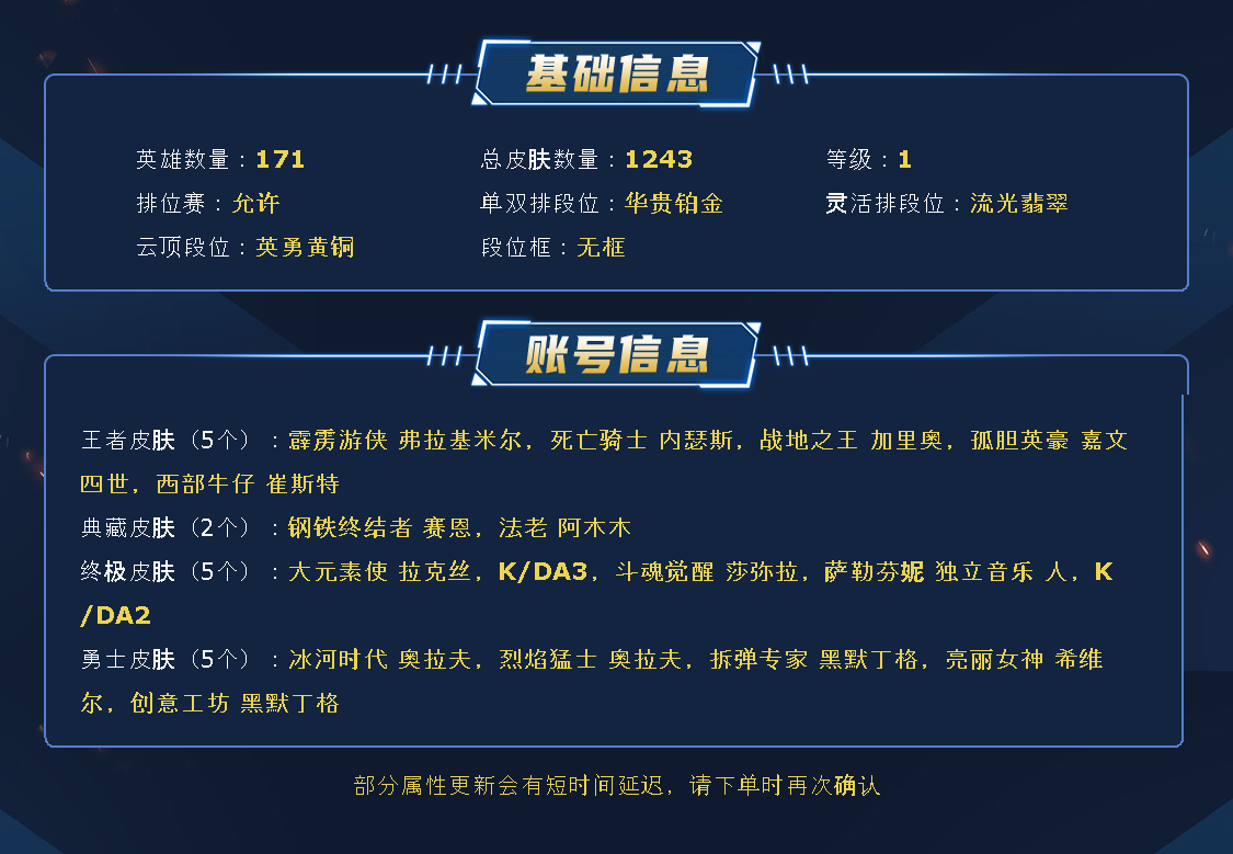 ~~喜欢记得收藏~~可排位~~1213皮全英雄丨831原皮382炫彩~~租之前尽量查一下游戏ID,确保段位是您需要的,避免浪费您的时间~~请勿挂机逃跑故意送人头,谢谢合作,谢谢~~