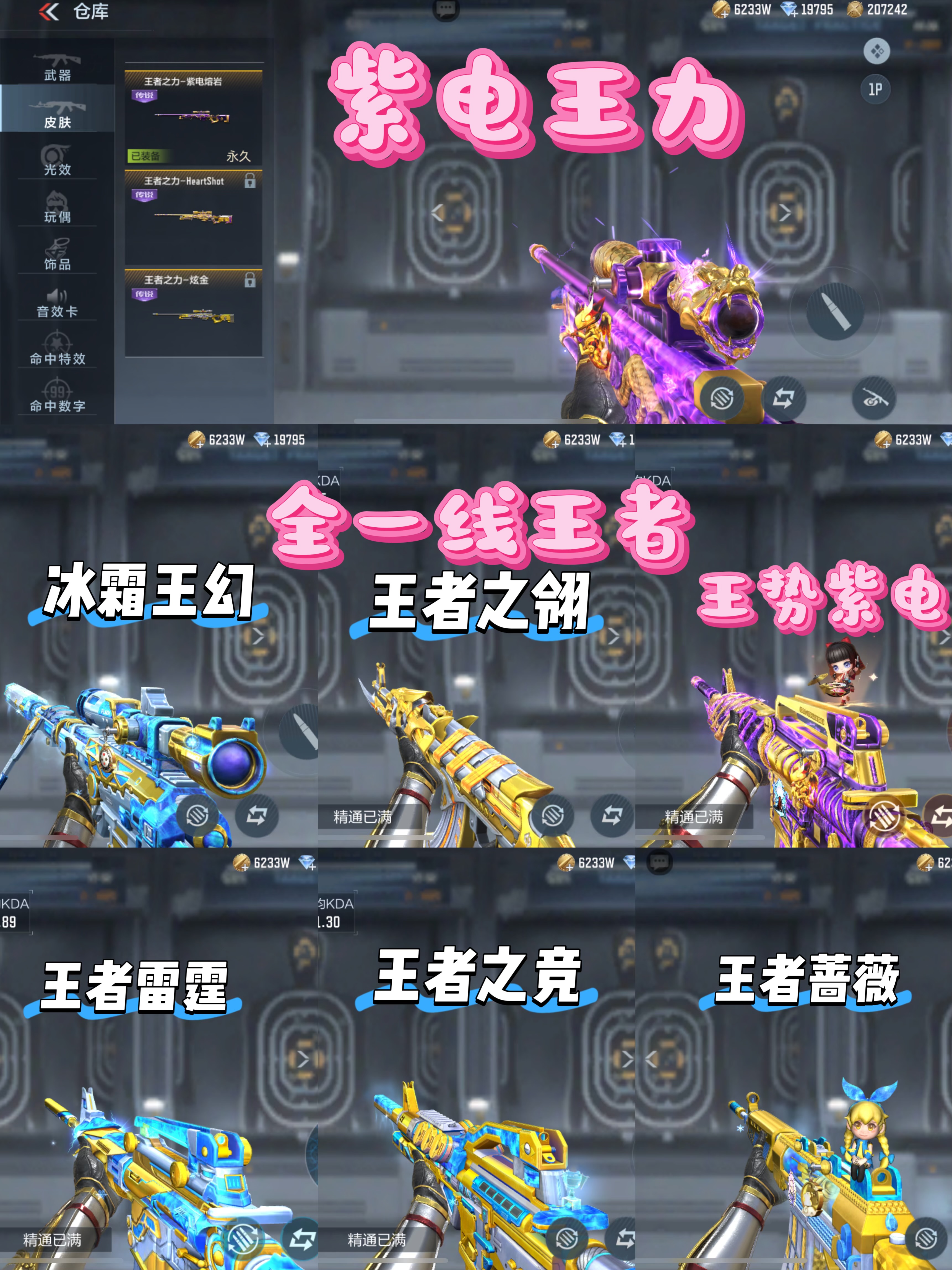 一线王者:王者之力紫电,王者之势紫电,王者蔷薇、王者之竞、王者幻神冰霜、王者之翎