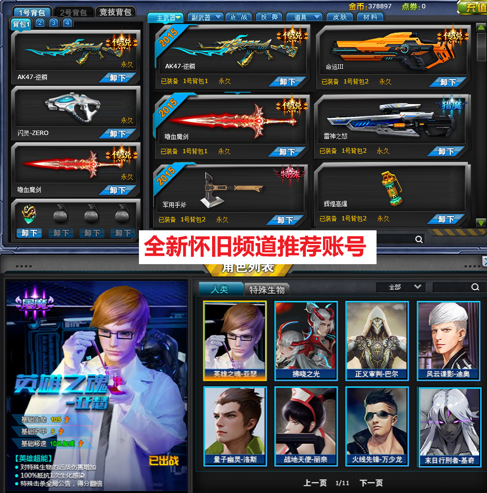 【贵宾游戏】嗜血魔剑雷神之怒男亚瑟军用手斧✨AK47逆鳞命运III✨2015怀旧频道推荐账号