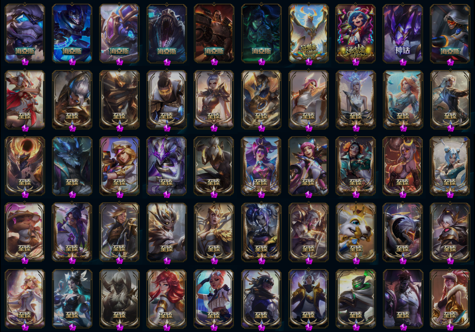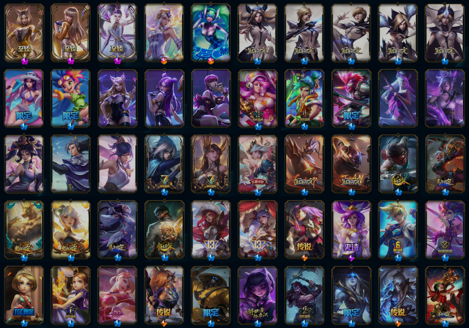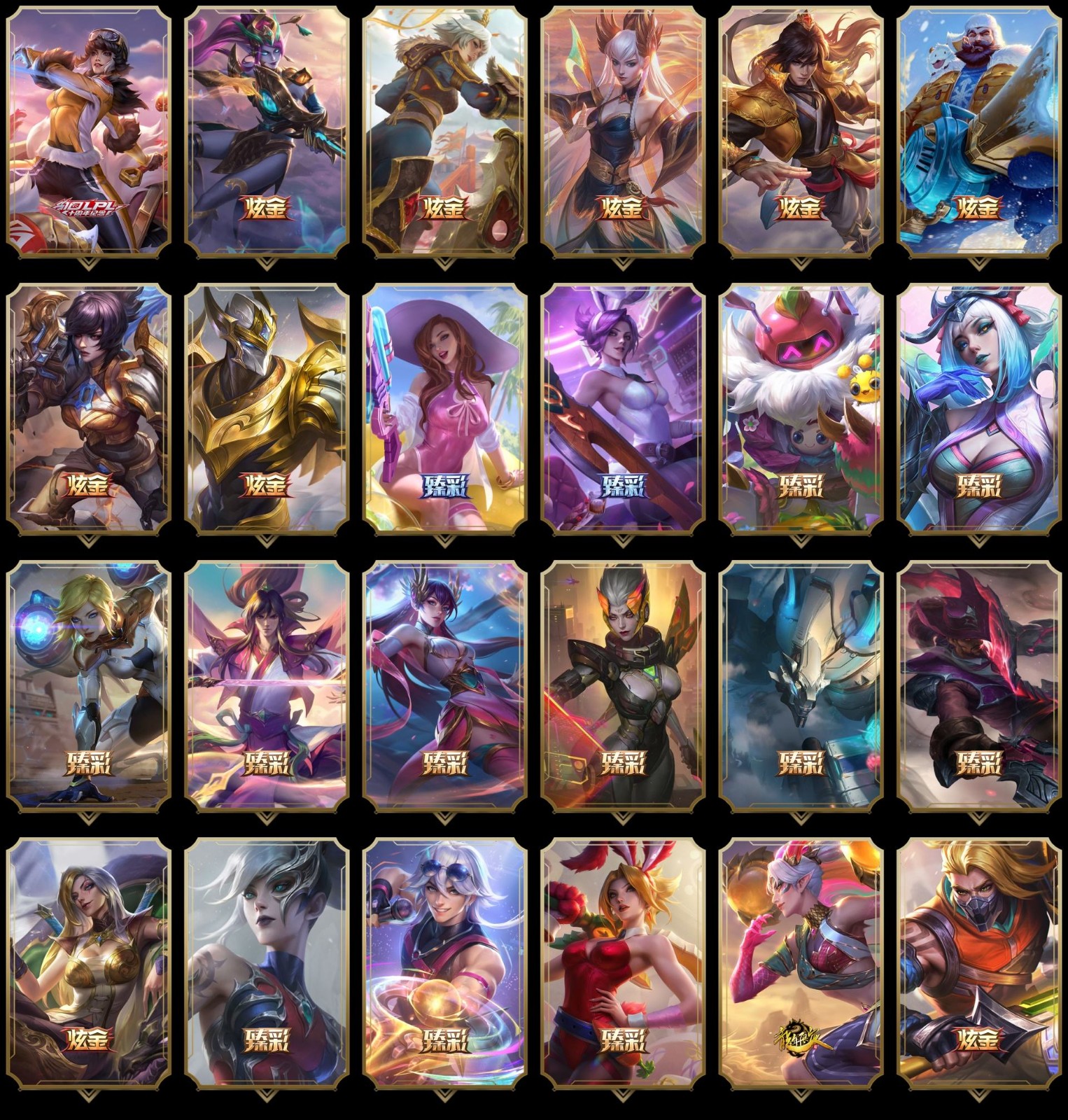 【重要皮肤】魔域梦魇泽丽至臻 幻灵狮心蕾欧娜至臻 魂蔷薇烈娜塔至臻 玉剑传说琴仙子至臻 斗魂觉醒萨科至臻 北极星使者沃里克至臻 至高天奎桑提至臻 灵魂莲华易至臻 海珀利安小队X09星环灵风迦娜至臻 星之守护者辛德拉至臻 海之歌萨勒芬妮至臻 幻灵战斗猫金克丝至臻 神凰行者烈羽焰凰霞至臻 女帝黛安娜至臻 魔女婕拉至臻 魔女乐芙兰至臻 未来战士卢锡安至臻 真实伤害亚索至臻 真实伤害赛娜至臻 星之守护者索拉卡至臻 灵魂莲华提莫至臻 灵能特工伊泽瑞尔至臻 福牛守护者菲奥娜至臻 源计划阴劫至臻 王国机神玄武盖伦至臻 暗星墨菲特至臻 神龙尊者炎龙瑟提至臻 黑夜使者凯隐至臻 征服者贾克斯至臻 飞升战神潘森至臻 KDA二代卡莎至臻 KDA一代卡莎至臻 KDA卡莎2022至臻 KDA阿狸至臻 KDA阿狸2022至臻 KDA阿卡丽至臻 KDA阿卡丽2022至臻 战斗学院拉克丝至臻 战斗学院拉克丝2022至臻 烈焰美人薇恩至臻 烈焰美人薇恩2022至臻 电玩女神凯特琳至臻 电玩女神凯特琳2022至臻 源计划正义艾瑞莉娅至臻 源计划正义艾瑞莉娅2022至臻 真实伤害奇亚娜至臻 真实伤害奇亚娜2022至臻 绒毛菲兹至臻 绒毛菲兹2022至臻 玉剑传说武剑仙至臻 玉剑传说武剑仙2022至臻 腥红之月亚托克斯至臻 腥红之月亚托克斯2022至臻 黑夜使者李青至臻 黑夜使者李青2022至臻 海克斯科技安妮 海克斯科技瑟庄妮 海克斯科技雷克顿 海克斯科技克格莫 海克斯科技吉格斯 海克斯科技嘉文四世 水晶掠夺者卡兹克 恐惧新星德莱厄斯 摄魂使者薇恩 新创战纪希维尔 青年瑞兹 胜利剑圣易 胜利女神娑娜 胜利之王泰达米尔 胜利巨口克格莫 哥特萝莉安妮 舞会公主安妮 奥斯曼大帝普朗克 巨角幻兽阿利斯塔 安妮梦游仙境 勇敢的心德莱厄斯 电玩女神厄运小姐 电玩勇者锐雯 电玩女神阿狸 星之守护者伊泽瑞尔 玉剑传说无影 玉剑传说舞剑仙 女帝厄运小姐 女帝格温 玉剑传说翼剑仙 星之守护者佐伊 灵能特工易 龙的传人李青 银龙裁决泰隆 替父从军花木兰 神龙烈焰金克丝 春晖神女拉克丝 你看见过我的熊猫吗安妮 北辰之威内瑟斯 南天之怒沃里克 美猴王孙悟空 定海神珍孙悟空 玉净夜叉凯特琳 紫金罗刹莫甘娜 广寒仙子嫦娥 虎痴之拳蔚 张辽文远 司马懿仲达 烈焰美人薇恩 醒狮克格莫 神龙之翼库奇 胜利女神瑟庄妮 胜利机器人布里茨 胜利女神奥莉安娜 胜利枪神卢锡安 胜利之剑亚托克斯 甜心宝贝安妮 甜心宝贝娑娜 觅心魔灵奥莉安娜 觅心女王艾希 觅心之翼奎因 寒冬精灵璐璐 冬季仙境奥莉安娜 圣诞捣蛋鬼金克丝 圣诞老人布隆 圣诞老人德莱文 冰雪风暴希维尔 冬季仙境卡尔玛 持胡萝卜的雪人易 冰封王子蒙多 冰雪女神辛德拉 魄罗骑士瑟庄妮 夺命美人卡特琳娜 平安夜女神娑娜 圣诞糖果棒厄运小姐 魅惑女巫艾尼维亚 魅惑女巫莫甘娜 魅惑女巫崔丝塔娜 魅惑女巫奈德丽 伯爵卡萨丁 死亡誓约劫 死亡誓约维克托 灵魂收割者索拉卡 勇敢的心德莱厄斯 泳池派对凯特琳 泳池派对佐伊 泳池派对普朗克 泳池派对奥莉安娜 泳池派对塔莉垭 泳池派对厄运小姐 泳池派对塔里克 泳池派对菲奥娜 泳池派对格雷福斯 泳池派对李青 泳池派对蕾欧娜 泳池派对雷克顿 电玩战魂赫卡里姆 御星魔矢艾希 送披萨的小姐姐希维尔 克格汪 制胜金靴李青 制胜金球拉莫斯 FPX锤石 FPX薇恩 FPX李青 FPX普朗克 FPX墨菲特 iG卡蜜尔 iG洛 iG卡莎 iG艾瑞莉娅 iG乐芙兰 iG菲奥娜 SSG洛 SSG纳尔 SSG塔莉垭 SSG嘉文四世 SSG伊泽瑞尔 SKTT1扎克 SKTT1辛德拉 SKTT1艾克 SKTT1阿利斯塔 SKTT1卡莉丝塔 SKTT1瑞兹 SKTT1伊莉丝 SKTT1雷克顿 SSW锤石 SSW雷恩加尔 SSW泰隆 SSW图奇 SSW辛吉德 SKTT1贾克斯 SKTT1劫 SKTT1婕拉 SKTT1李青 SKTT1薇恩 暗杀星奥莉安娜 暗杀星蒙多 暗杀星努努和威朗普 暗杀星伊泽瑞尔 暗杀星慎 Fnatic迦娜 Fnatic库奇 Fnatic古拉加斯 Fnatic嘉文四世 Fnatic卡尔萨斯 冰雪节格雷福斯 冰雪节玛尔扎哈 冰雪节辛吉德 冰雪兽纳尔 防暴士兵格雷福斯 防暴士兵辛吉德 防暴天使凯尔 钢铁之翼艾尼维亚 冠军典狱长锤石 冠军之矛卡莉丝塔 冠军之刃锐雯2016 冠军之血希瓦娜 冠军之隐劫 冠军之志瑞兹 鬼影森森茂凯 鬼影重重魔腾 海贼瑞兹 红桃杰克崔斯特 胡桃夹子萨科 惊悚派对阿木木 惊悚派对费德提克 警用试作体K9内瑟斯 蓝色忧郁崔斯特 蒙多蒙多 密林猎手提莫 南瓜头费德提克 女猎手希维尔 破空枪骑孙悟空 圣诞精灵崔丝塔娜 圣诞开心鬼提莫 圣诞狂欢基兰 圣诞狂欢努努和威朗普 圣诞老人古拉加斯 圣诞玩偶波比 圣诞驯鹿克格莫 糖果使徒费德提克 外星装甲库奇 卧虎藏龙贾克斯 无头骑士赫卡里姆 喜庆之树茂凯 邪恶圣诞老人维迦 幸福女神乐芙兰 雪默丁格 雪装奈德丽 野兽猎人德莱文 野兽猎人瑟庄妮 野兽猎人泰达米尔 英勇玩具兵普朗克 永恒之森乐芙兰 勇者阿狸 征服者卡尔玛 征服者韦鲁斯 暗影沃里克 冠军之箭艾希 机械迷城加里奥 诺斯费拉图弗拉基米尔 阿木木主人不要我了 波比的巧克力工坊 地底世界崔斯特 都铎王朝图奇 十五周年纪念希维尔 十周年纪念安妮 源代码乐芙兰 神凰行者瑞羽圣凰艾尼维亚 胜利凤凰艾尼维亚 DJ娑娜 大元素使拉克丝 灵魂守卫乌迪尔 未来战士伊泽瑞尔
