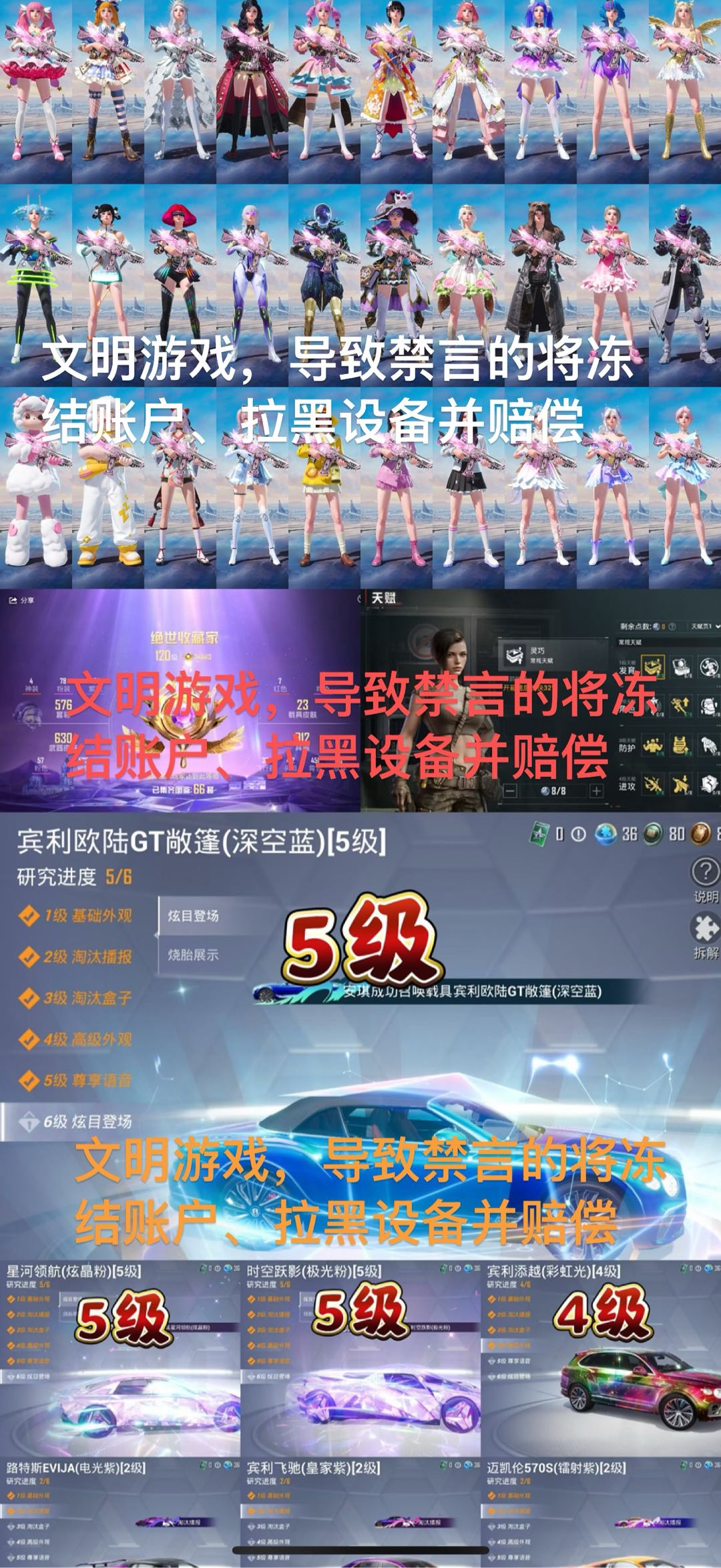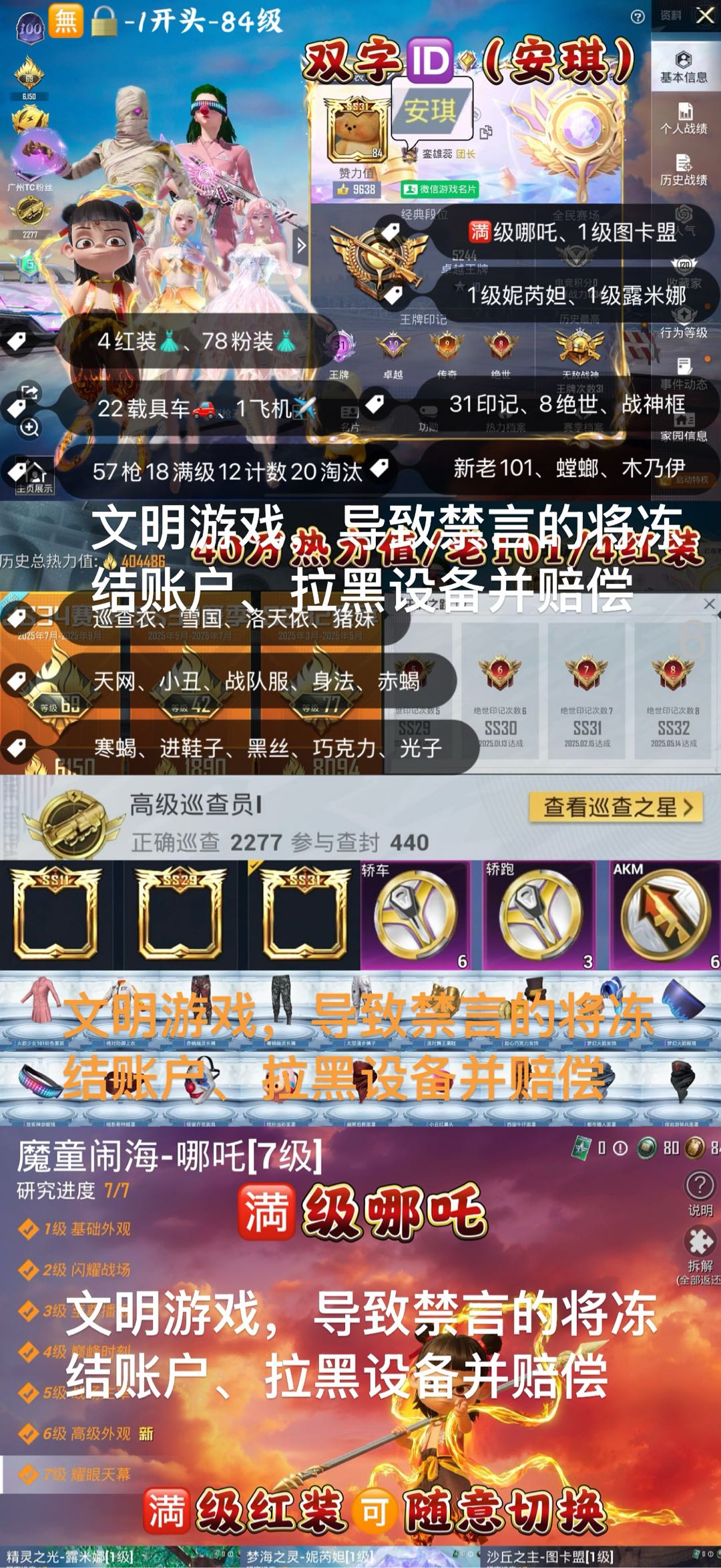 (已备案)拆枪拉黑!文明游戏,租号导致禁言禁麦的追责。枪械车辆不可拆卸,拆卸拉黑并追究法律责任,爱护账号,感谢大家。