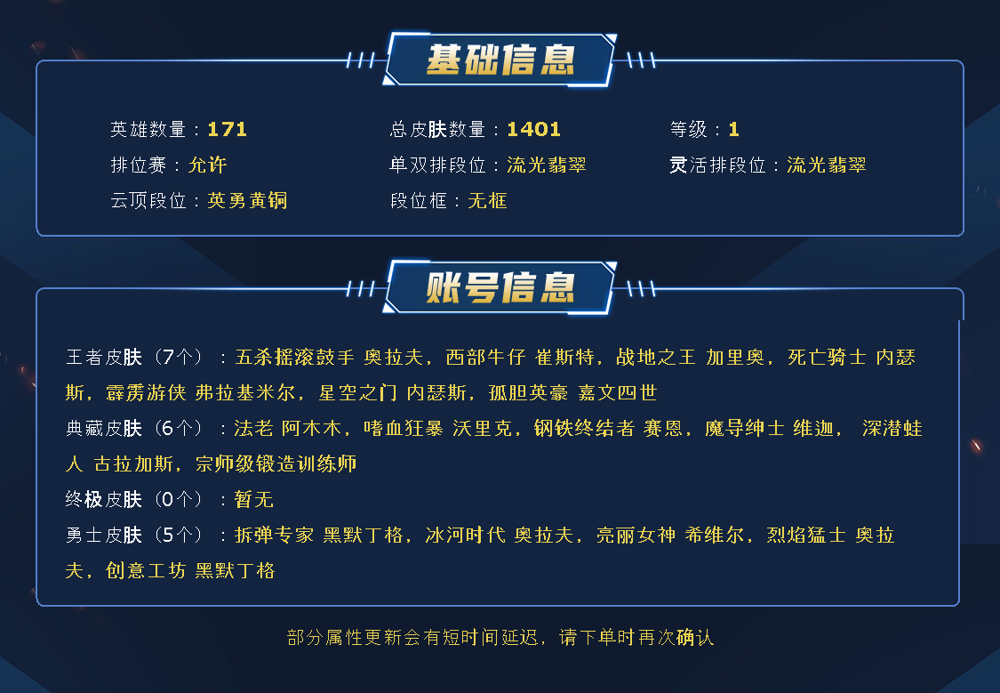 ~~喜欢记得收藏~~可排位~~1391皮全英雄~~租之前尽量查一下游戏ID,确保段位是您需要的,避免浪费您的时间~~请勿挂机逃跑故意送人头,谢谢合作,谢谢~~