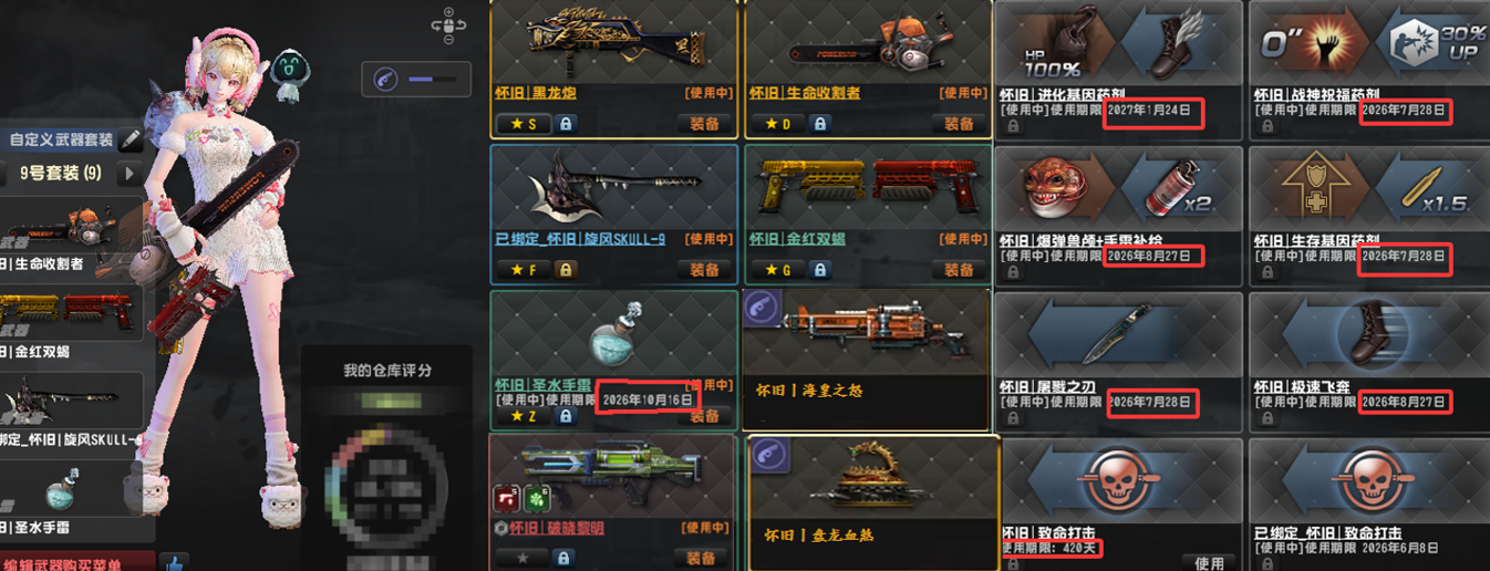 3.三特典:特典加特林,特典狙,特典尖端!赛季第1,3,6,10到21赛季悬赏!强化武器全满,主要配件武器6阶,其他最少5阶!已去黑雾!