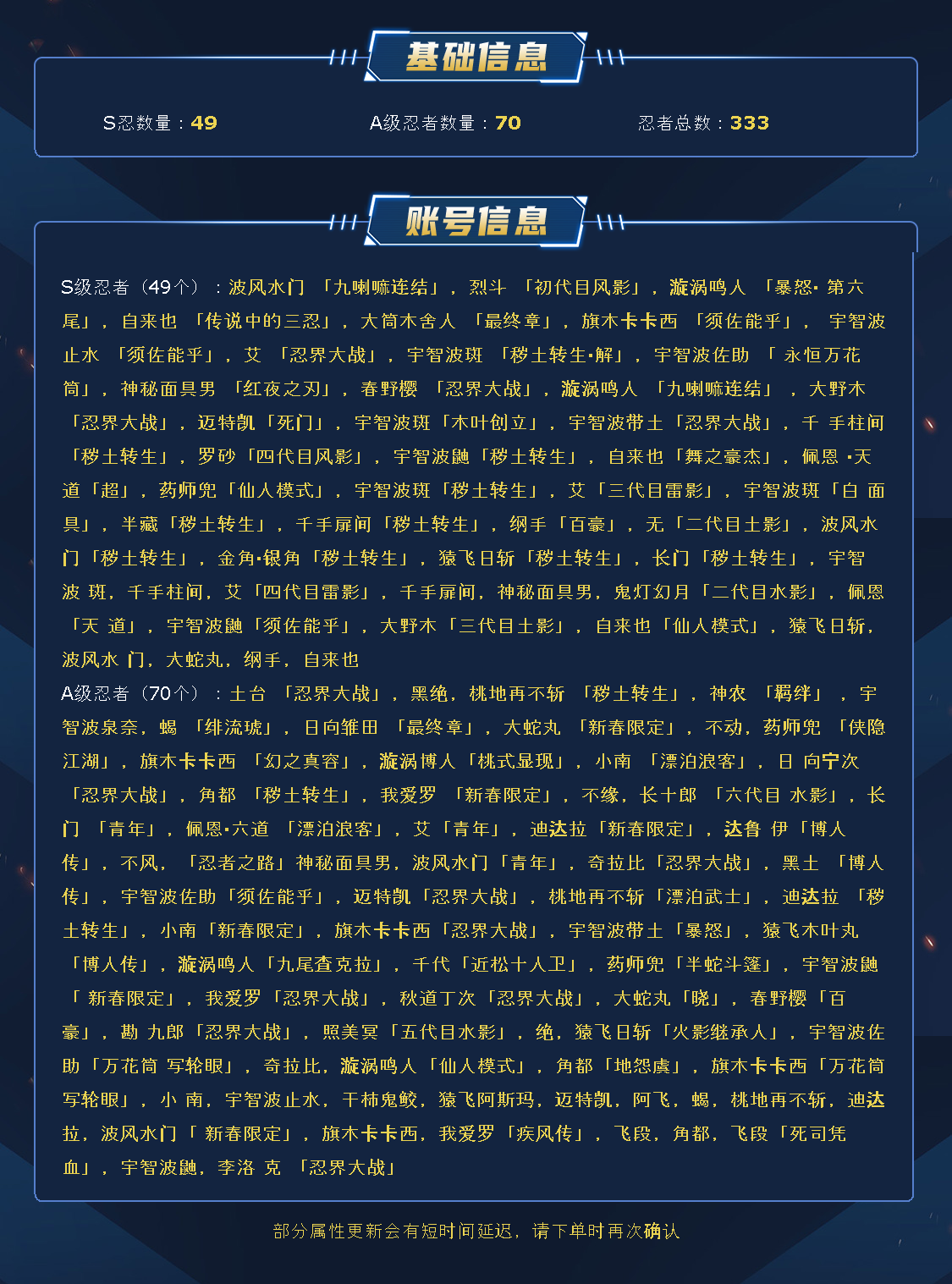/漩涡鸣人「初始状态」/桃地再不斩「漂泊武士」/蝎 「绯流琥」/佩恩·六道 「漂泊浪客」/波风水门「新春限定」/迈特凯「忍界大战」/烈斗 「初代目风影」/神秘面具男 「红夜之刃」/宇智波斑 「秽土转生·解」/自来也 「传说中的三忍」/波风水门「秽土转生」/宇智波止水 「须佐能乎」/漩涡鸣人 「九喇嘛连结」/大筒木舍人 「最终章」/漩涡鸣人 「暴怒·第六尾」/宇智波斑「白面具」/艾 「忍界大战」/宇智波带土「忍界大战」/宇智波佐助 「永恒万花筒」/佩恩·天道「超」/旗木卡卡西 「须佐能乎」