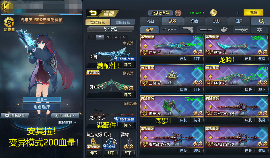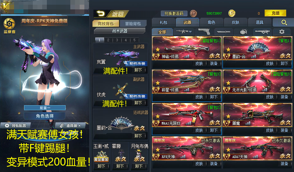 传说:墨韵合!神谕终焉!碎星终焉!无尽终焉!无限ex!血魔!RPK+AK天神!