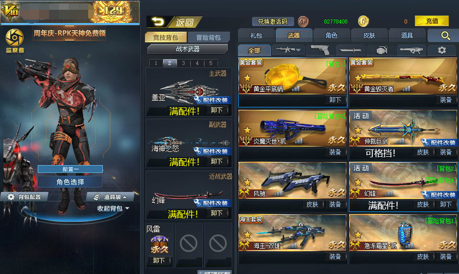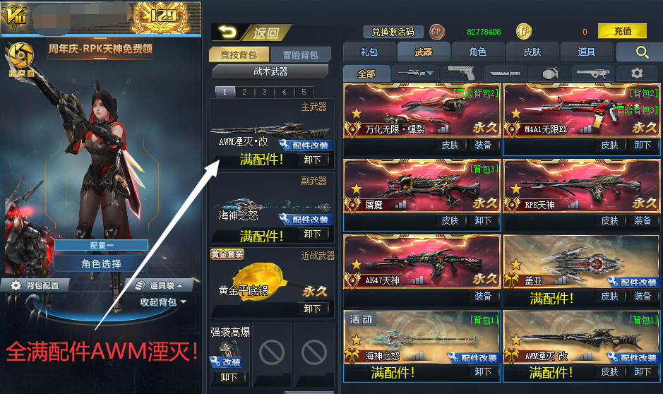 v10全满配件AWM湮灭!满配件海神之怒!血魔!无限ex!潘多拉母体!满配件盖亚!满幻锋!黄金平底锅