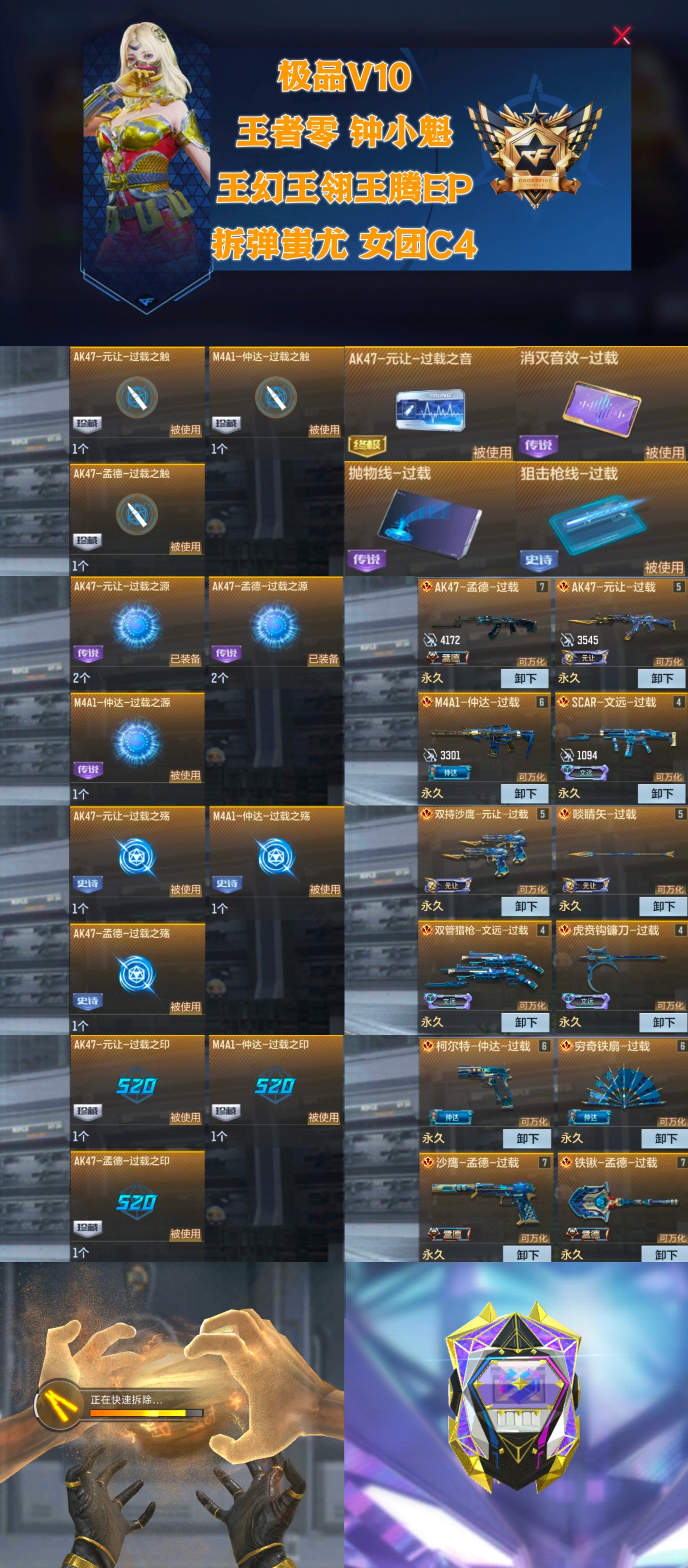 【安卓】 新V10🌈王者葵✔钟小魁✅满配元让过载✅三EP✔拉丝王力炫金/音效卡✅6王烈王蝶✔宙斯套✅拆弹蚩尤