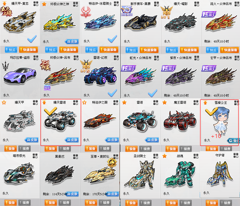 S爆天雷诺=爆天甲黄忠=终极众神之神吕布虹光=特洛伊冰霜骑士盘龙至尊迈凯伦暗夜极光盘龙魔王雪凝10