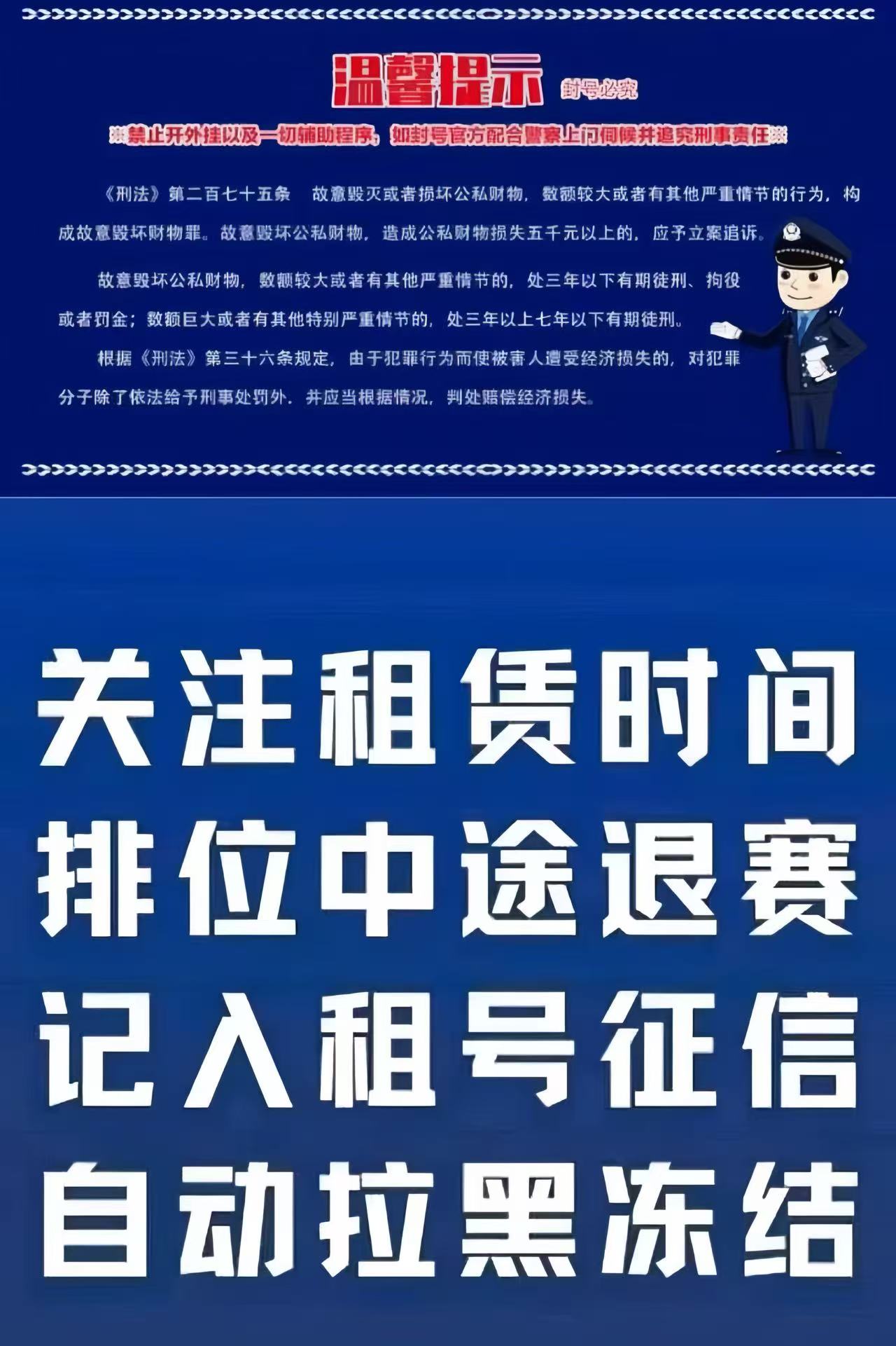 租赁押金:0元(不得使用外挂等第三方软件,违反将会扣除押金)