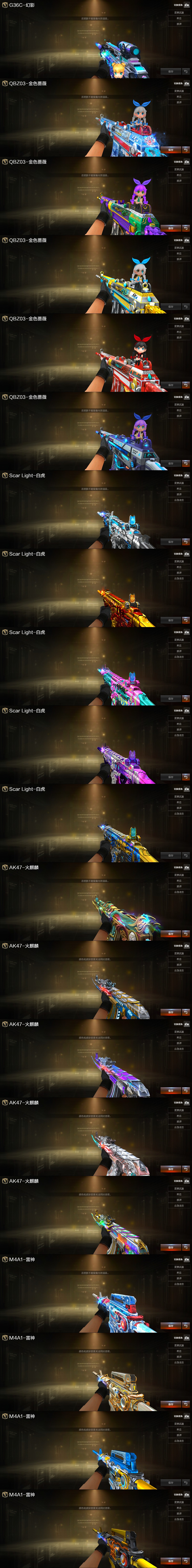 【王者武器】:王者之心-觉醒版/王者之魄-觉醒版/王者白虎-觉醒版/QBZ-03-王者蔷薇-觉醒版/白虎之魄-觉醒版/王者芳薇-觉醒版/王者之怒-觉醒版/王者之光-觉醒版/王者幻神-觉醒版/王者风神-觉醒版/王者星霆
