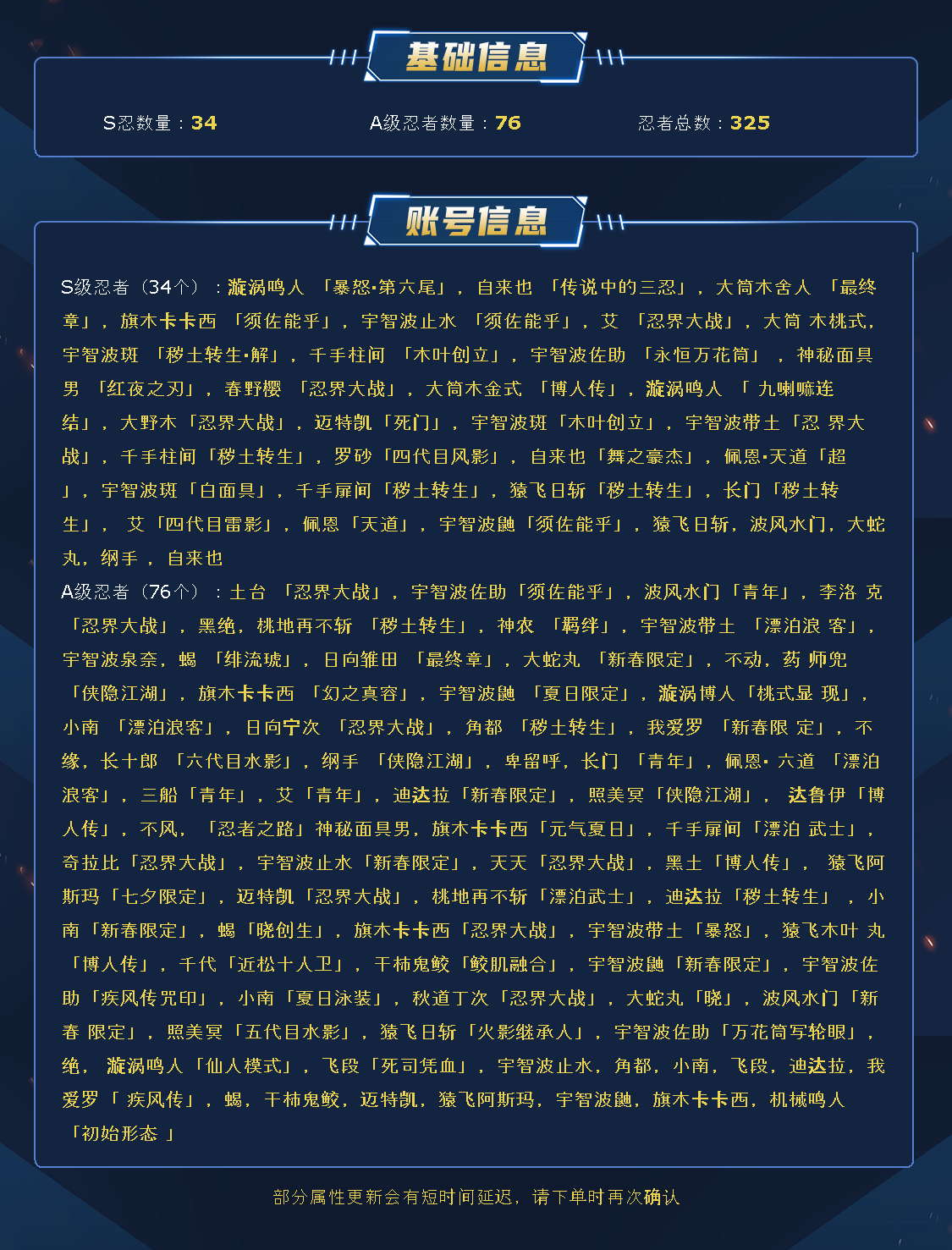 宇智波止水「新春限定」/桃地再不斩「漂泊武士」/蝎 「绯流琥」/佩恩·六道 「漂泊浪客」/波风水门「新春限定」/宇智波带土 「漂泊浪客」/迈特凯「忍界大战」/神秘面具男 「红夜之刃」/宇智波斑 「秽土转生·解」/自来也 「传说中的三忍」/千手柱间 「木叶创立」/宇智波止水 「须佐能乎」/漩涡鸣人 「九喇嘛连结」/大筒木舍人 「最终章」/漩涡鸣人 「暴怒·第六尾」/宇智波斑「白面具」/艾 「忍界大战」/宇智波带土「忍界大战」/宇智波佐助 「永恒万花筒」/大筒木桃式/佩恩·天道「超」/旗木卡卡西 「须佐能乎」