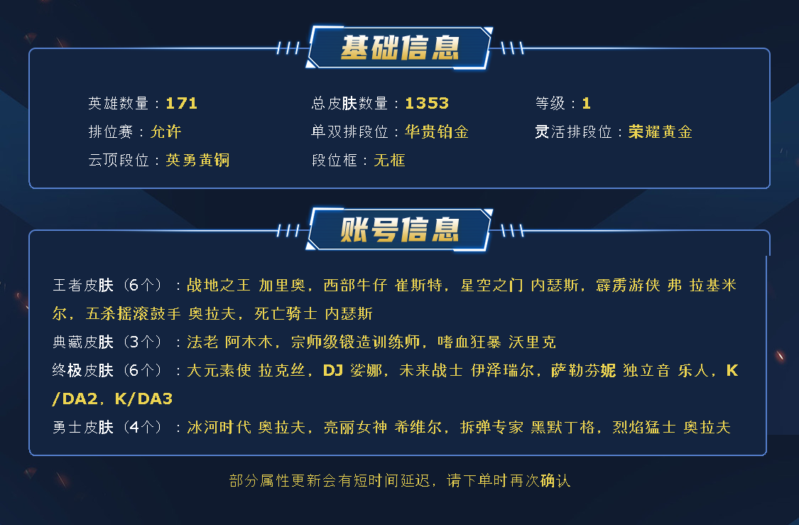 ~~喜欢记得收藏~~可排位~~1400皮全英雄~~租之前尽量查一下游戏ID,确保段位是您需要的,避免浪费您的时间~~请勿挂机逃跑故意送人头,谢谢合作,谢谢~~