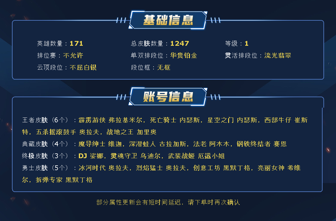 ~~喜欢记得收藏~~可排位~~1240皮全英雄丨917原皮323炫彩~~租之前尽量查一下游戏ID,确保段位是您需要的,避免浪费您的时间~~请勿挂机逃跑故意送人头,谢谢合作,谢谢~~