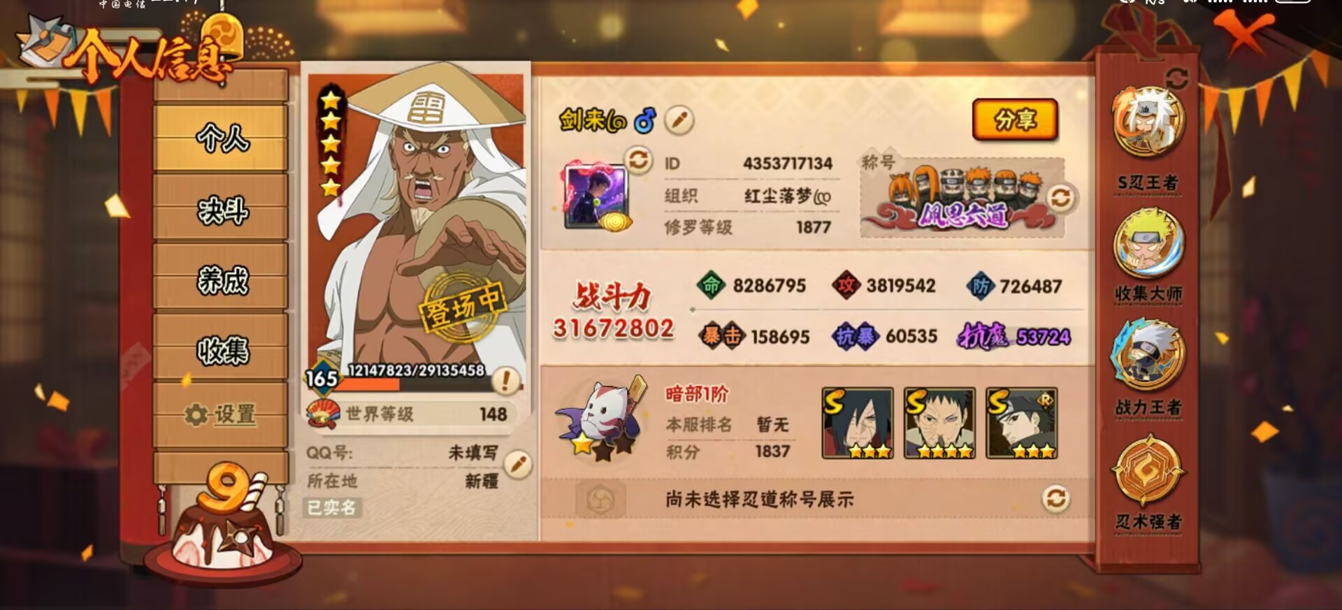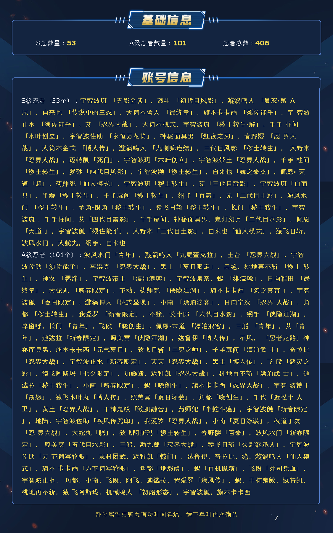 52S 100A 402忍者 宇智波带土「暴怒」干柿鬼鲛「鲛肌融合」宇智波佐助「疾风传咒印」迈特凯「忍界大战」宇智波带土「忍界大战」宇智波斑「木叶创立」佩恩·天道「超」