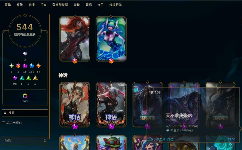 允许排位 -【德玛西亚】殿堂阿狸|殿堂卡莎|圣堂腕豪|殿堂薇恩+妖姬|海魔至尊|三款全球总决赛