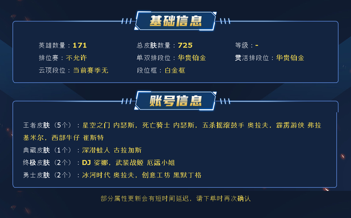 首页 > 英雄联盟 > /联盟五区 /德玛西亚 > 商品编号:245729