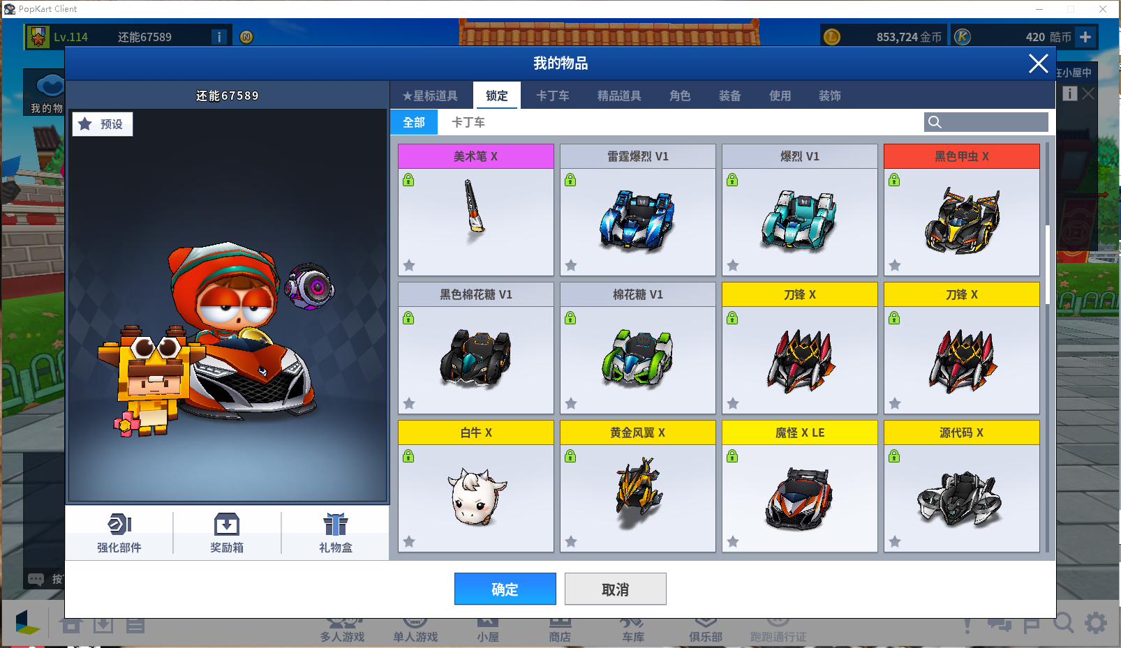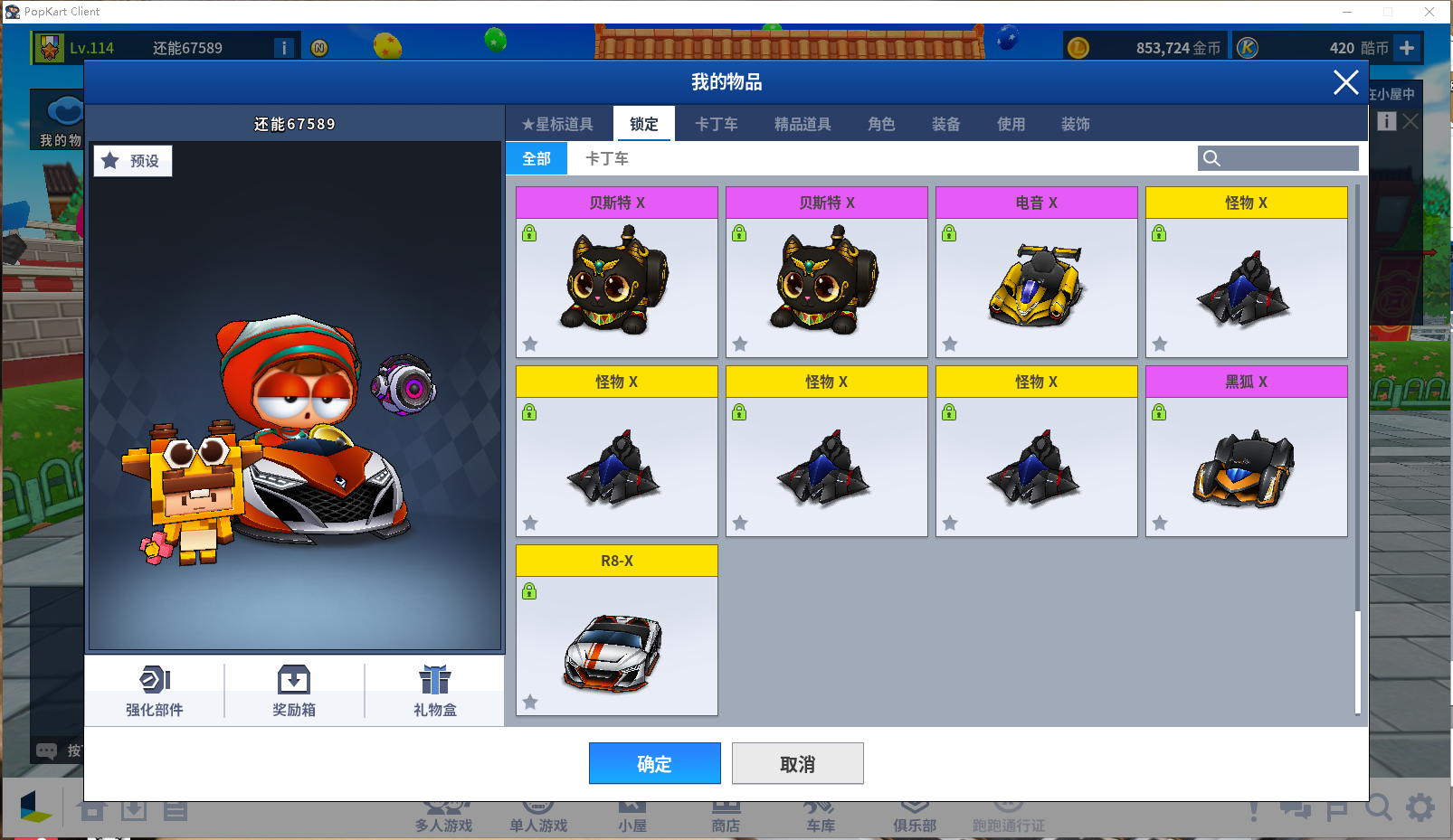 〓双线大区〓黑妞无限丨宙斯无限丨超市售货员宝宝无限丨学生黑杰克无限丨阿凯无限丨考拉宠物无限丨樱花狐狸宠物无限丨迷你音箱无限(强力启动飞宠)丨尖锋SRXV1V1无限(启动三级、变形三级)V1高级引擎-V1高级方向盘-V1高级车轮-V1高级加速器丨烈焰敞篷跑车无限丨尖锋SRXV1无限丨棉花糖SRXV1无限丨尖锋V1无限丨马拉松V1无限丨虎啸V1无限丨电音V1无限丨合金V1无限丨雷霆爆烈V1无限丨爆烈V1无限丨黑色棉花糖V1无限丨棉花糖V无限丨黑色甲虫X无限丨白牛X无限丨R8X无限丨鬼火V1无限丨马桶车V1无限丨黯泣X无限丨共计40辆永久车(包含重复车辆)丨改装保护锁19个丨双重保护扳手3个丨黄金猪护目镜无限丨笑护目镜无限丨道具变更卡3400个丨道具换位卡3400个丨红色喷漆无限丨药剂印迹无限丨酷币400个丨金币80万丨等级LV.114丨