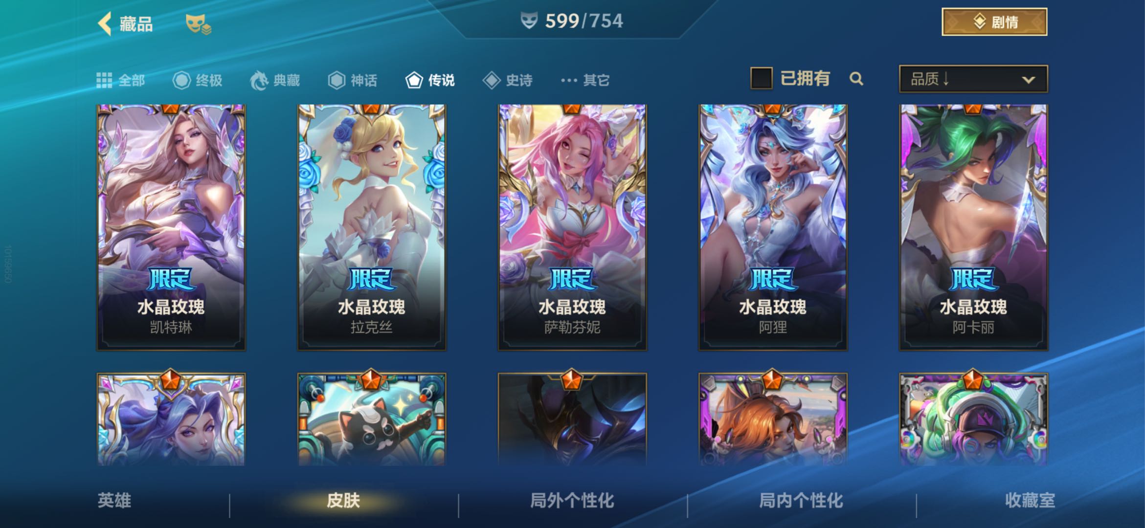 【苹果】 【允许排位】600皮|1典藏|水晶玫瑰套|兰亭序全套|29神话|79传说
