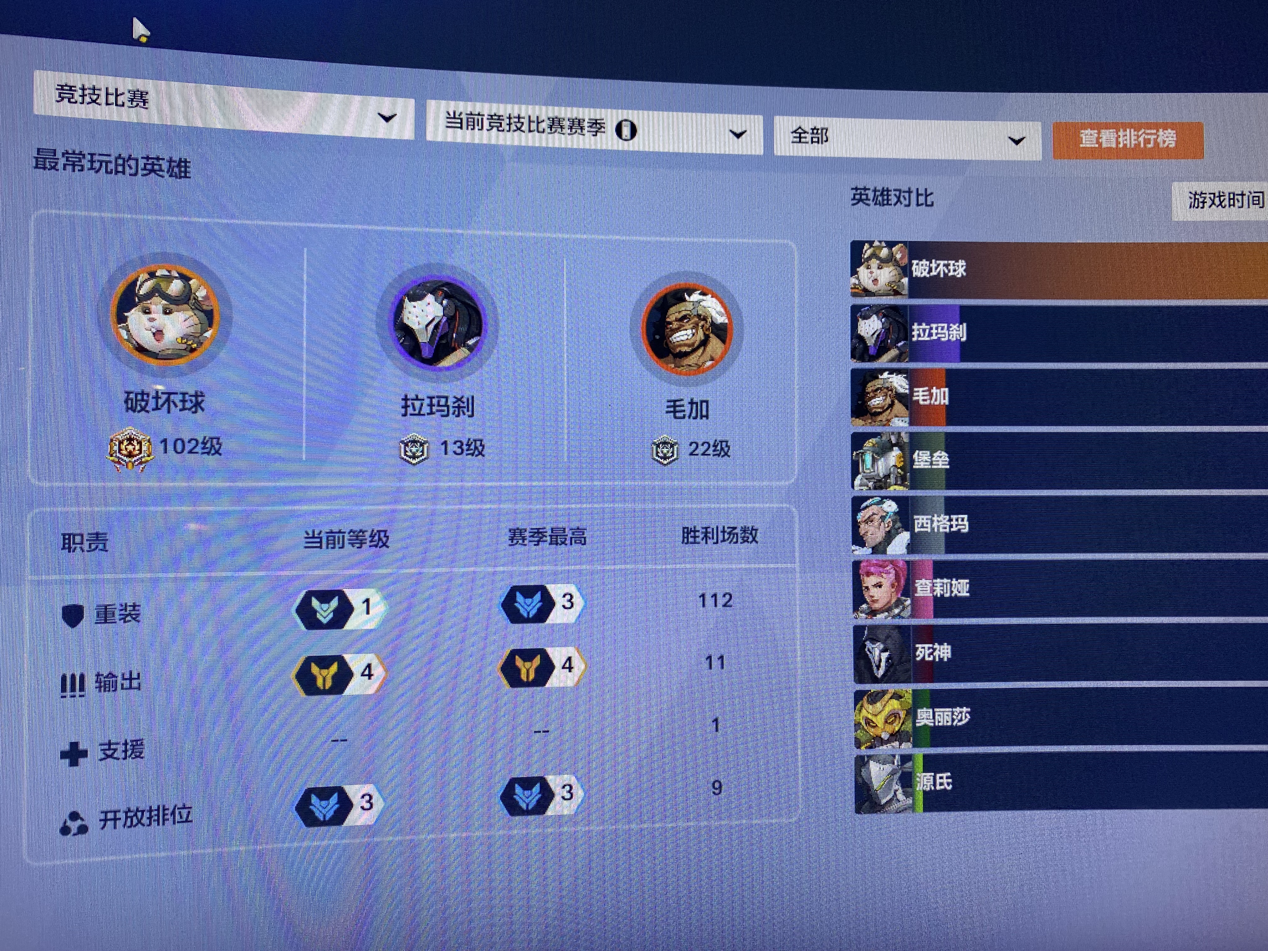 守望先锋国服百级破坏球,可排位,段位钻石