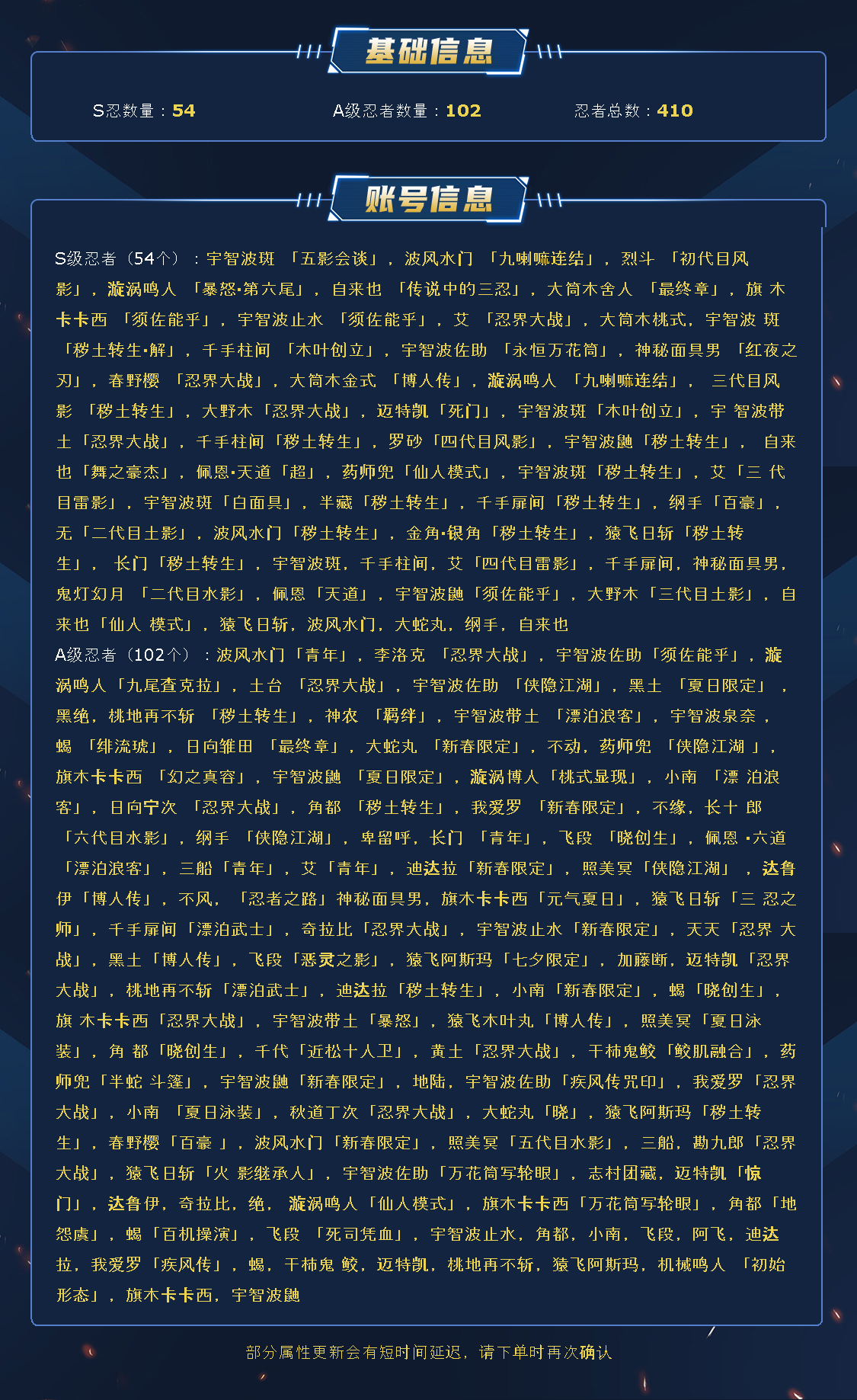 53S 101A 407忍者 宇智波止水「新春限定」/桃地再不斩「漂泊武士」/蝎 「绯流琥」/佩恩·六道 「漂泊浪客」/波风水门「新春限定」/飞段 「晓创生」/宇智波带土 「漂泊浪客」/迈特凯「忍界大战」/烈斗 「初代目风影」/神秘面具男 「红夜之刃」/宇智波斑 「秽土转生·解」/自来也 「传说中的三忍」/波风水门「秽土转生」/千手柱间 「木叶创立」/宇智波止水 「须佐能乎」/漩涡鸣人 「九喇嘛连结」/漩涡鸣人 「暴怒·第六尾」/宇智波斑「白面具」/宇智波带土「忍界大战」/三代目风影 「秽土转生」/宇智波佐助 「永恒万花筒」/佩恩·天道「超」/旗木卡卡西 「须佐能乎」/波风水门 「九喇嘛连结」