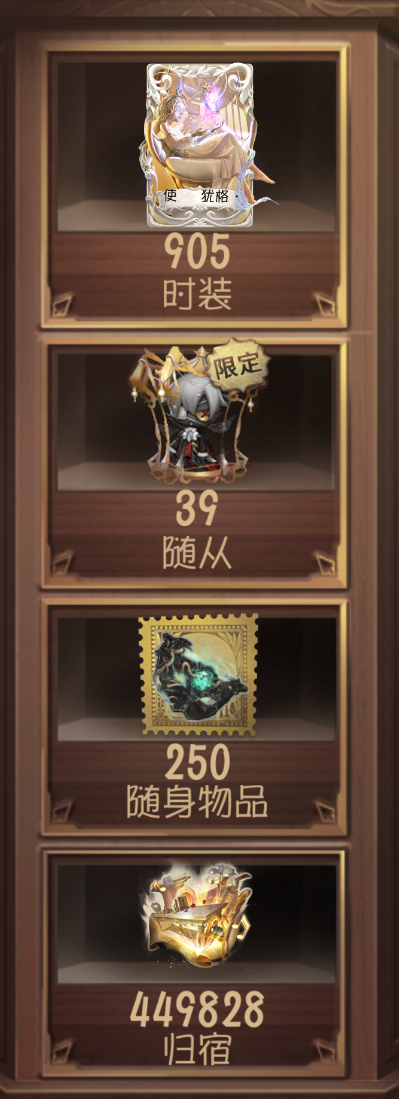 【安卓】 ❤️116金44万豪华归宿❤️共享祭司虚妄❤️夜来香加特典狱长赤宴箜篌雨宫莲珍奇柜❤️200奇珍皮