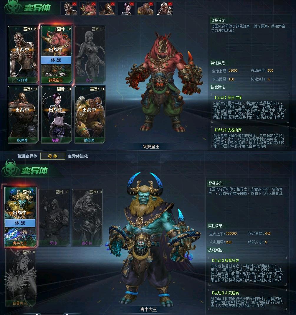变异角色:铜兕蛮王、魅影