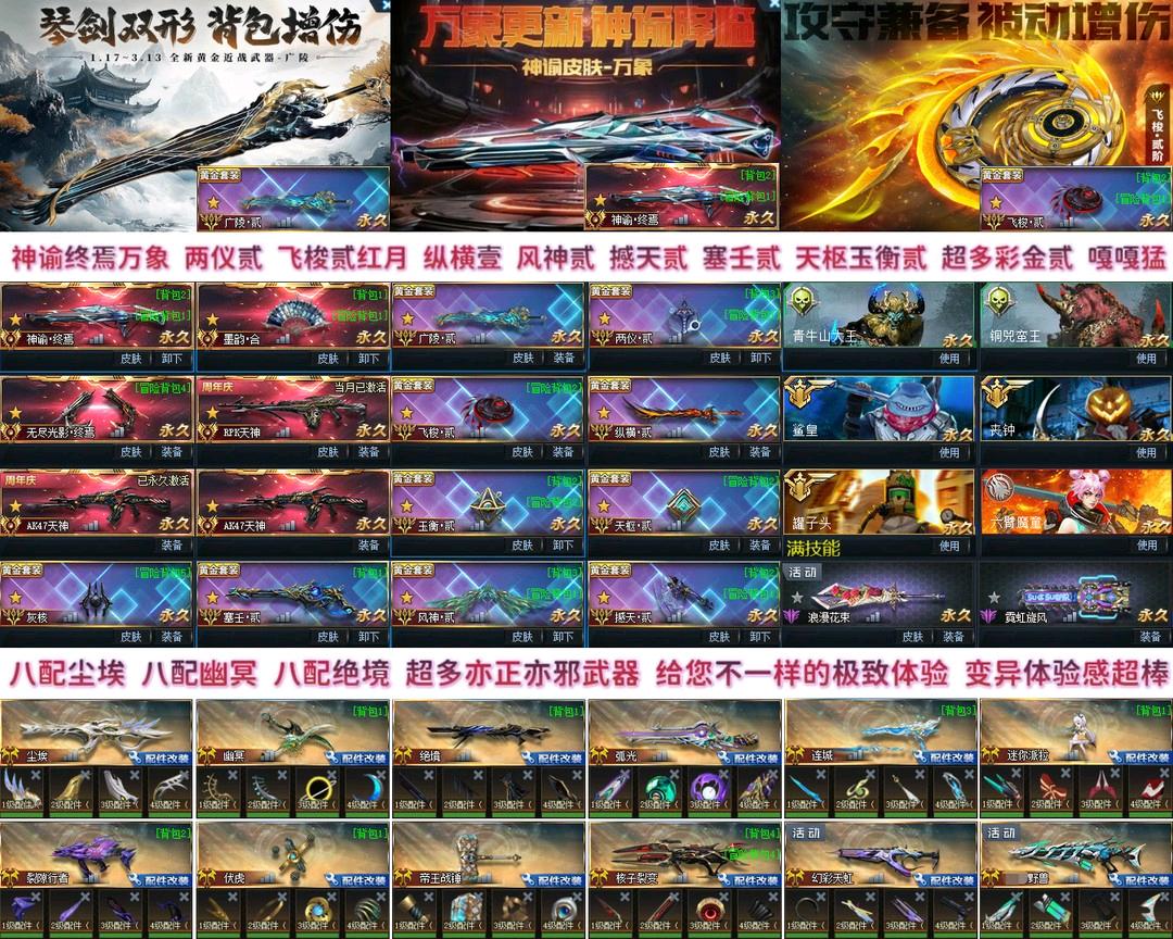 神谕终焉(万象)、墨韵合、无尽终焉、两把AK天神、碎星传承、雷神起源、SCAR影身