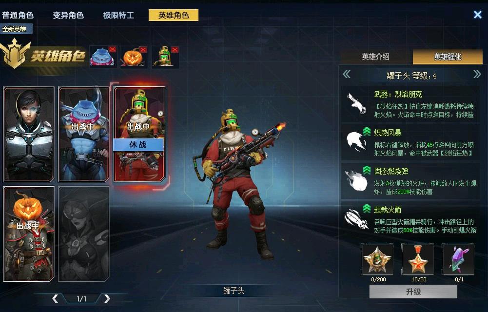 英雄角色:罐子头(满技能)、鲨皇、丧钟