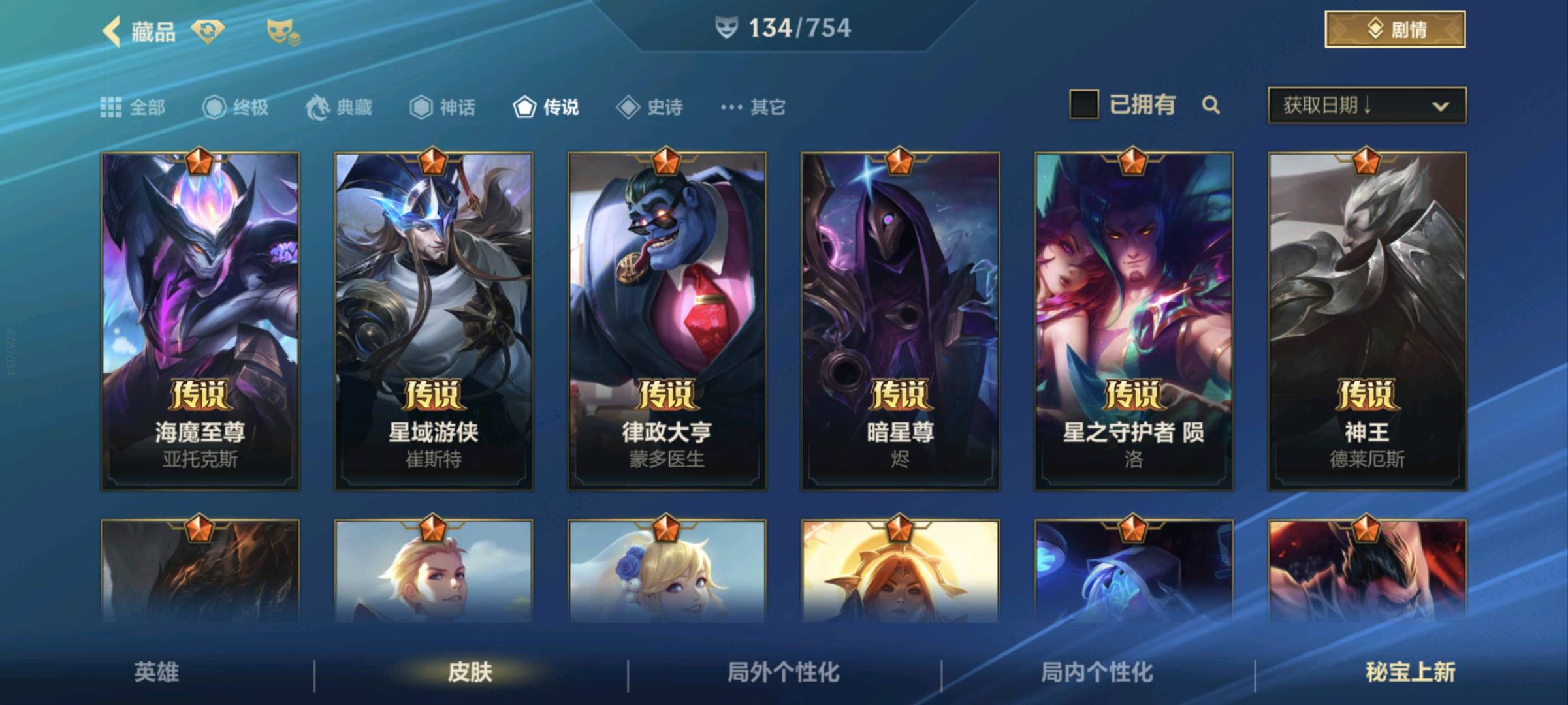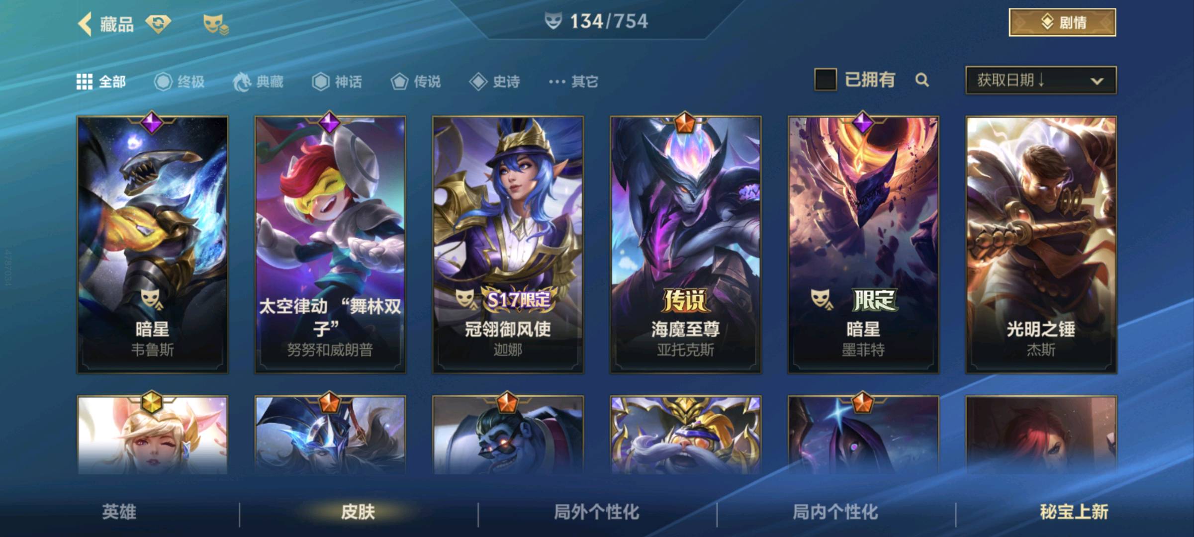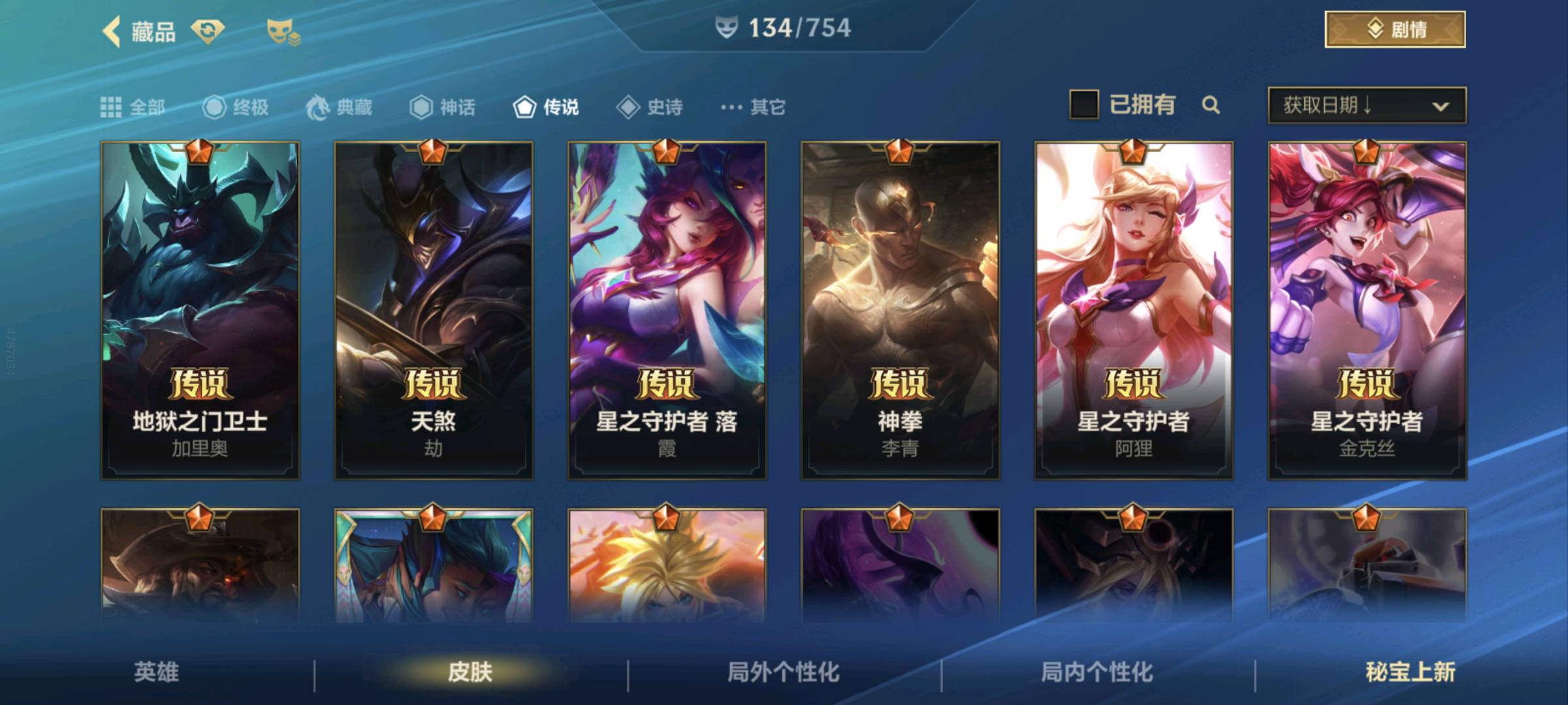 【安卓】 【允许排位】134皮/21传说/7水晶玫瑰ez拉克丝/天煞劫/神拳/神话星守阿狸/可排位