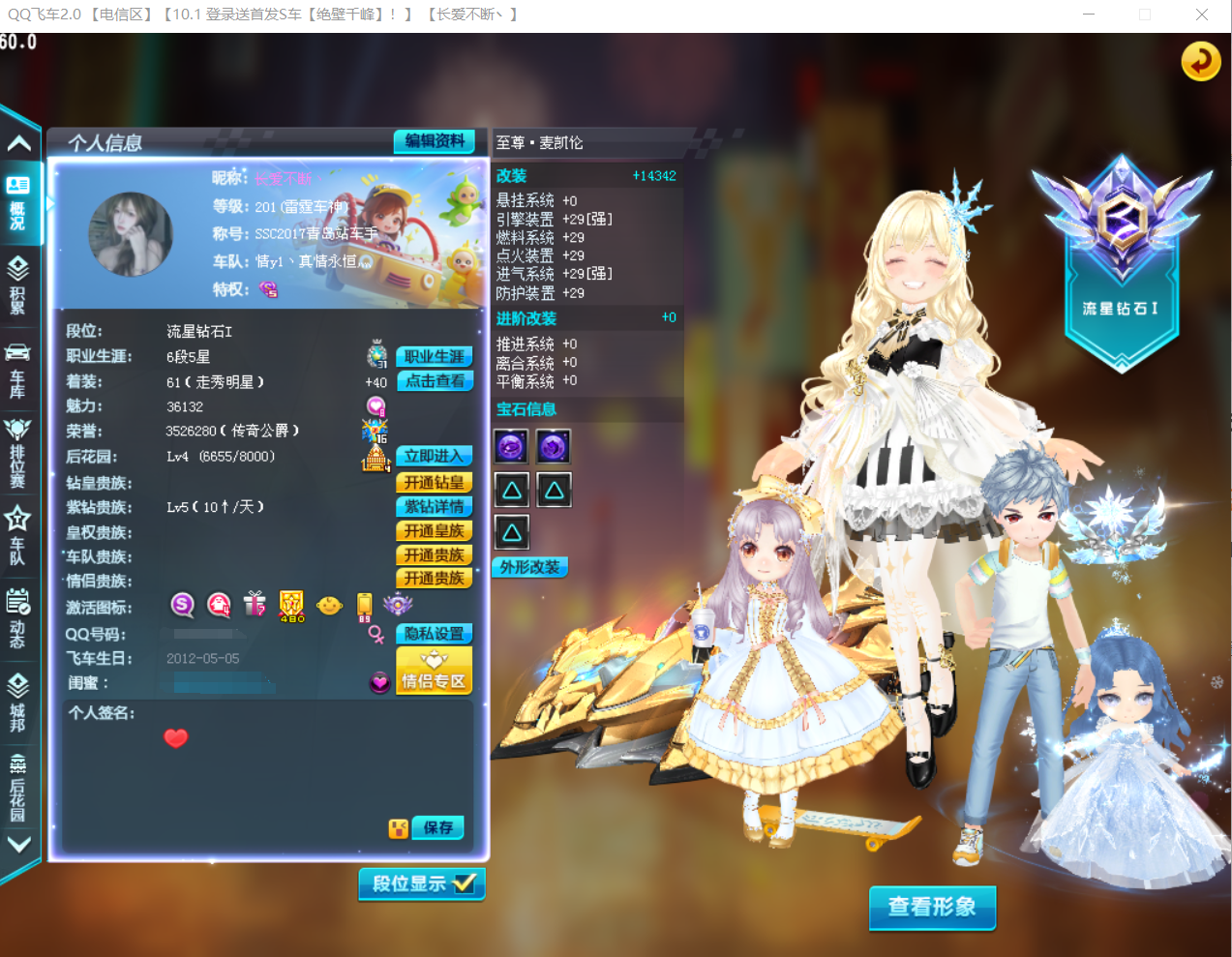 7S:29双四黑曼巴、29双四至尊麦凯伦、29单四终迈赵云+屠龙,中改星之精灵-芒星、中改双四黑域电魔玄冥、通天晓、巅峰黑夜、T2:圣天使、高改孙悟空,4T1:侍武之魂,绿影骑士,朱雀,26A:29永久雷诺幻夜3阶,地狱雷诺,1C:飞碟,14骑宠:雪凝公主强10,子鼠灵韵强7,小赵云强7,梅花仙鹿典藏版,套装:男装45页,男发饰54页,女装10页,女发饰14页,悬浮:天籁之声男女,魅力36132
