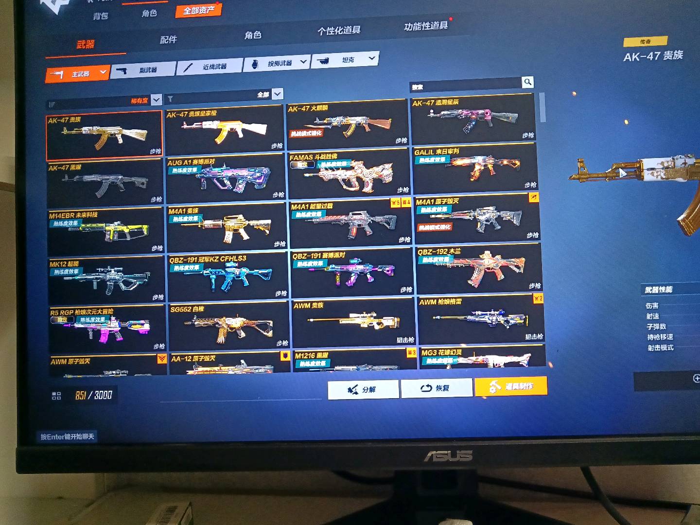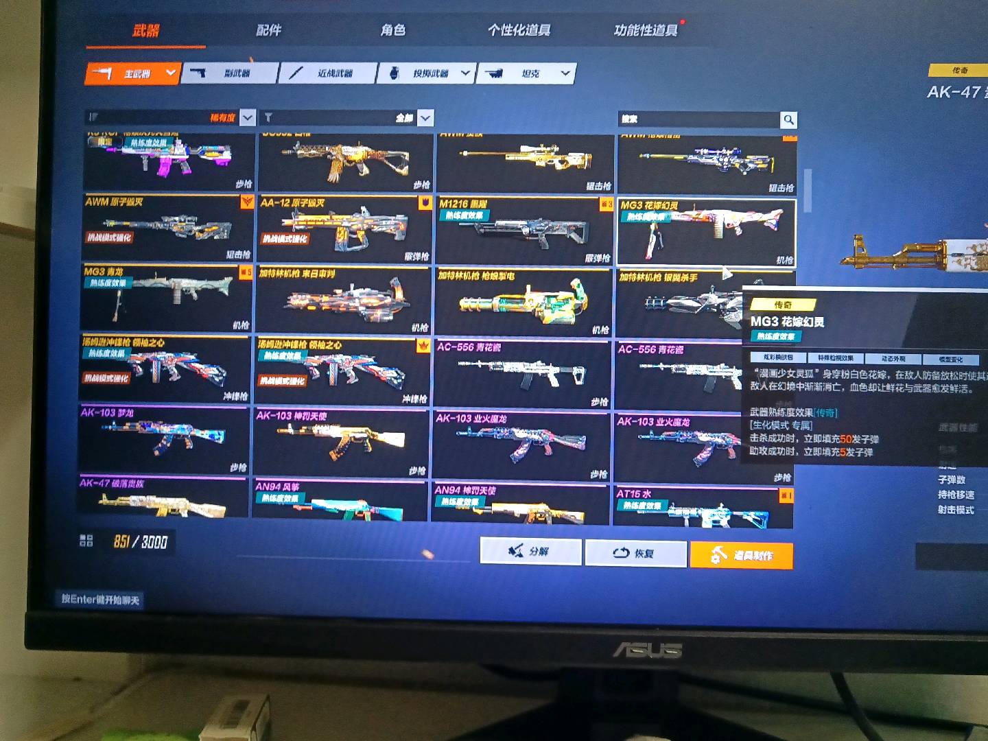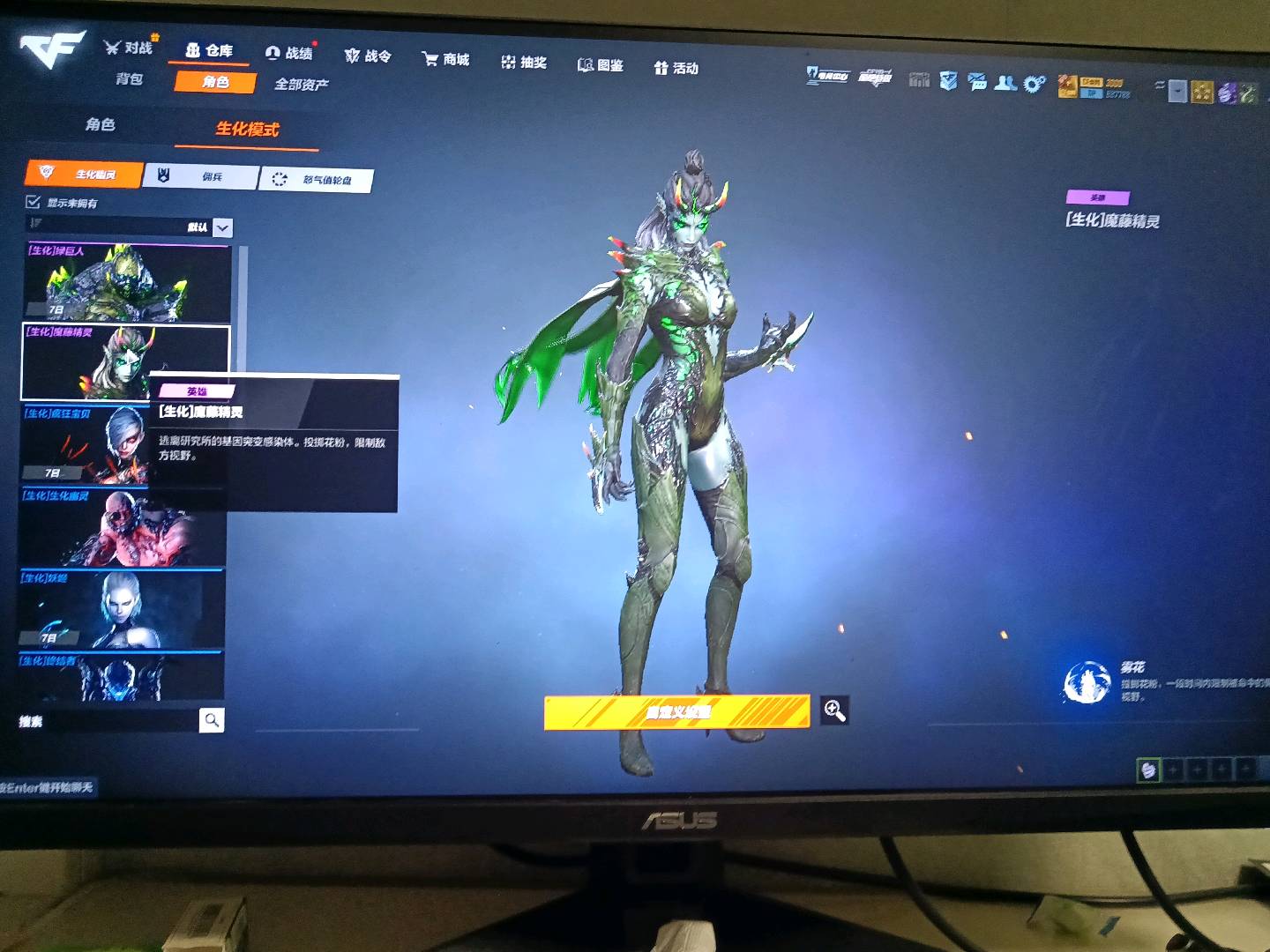 生化追击专属号40把传奇熟练度武器,满生化佣兵角色,有魔腾,80金