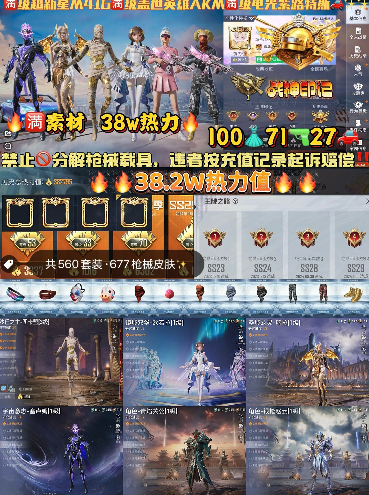 【苹果】 极品🆔✨绝世战神✨6神装3级图卡盟老101全素材✨2满级车9级超新星8级星梦✨110粉71特27车